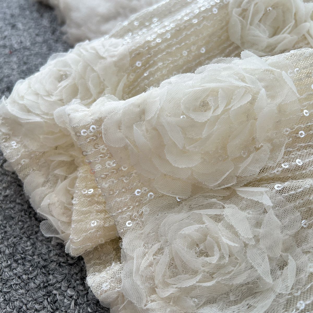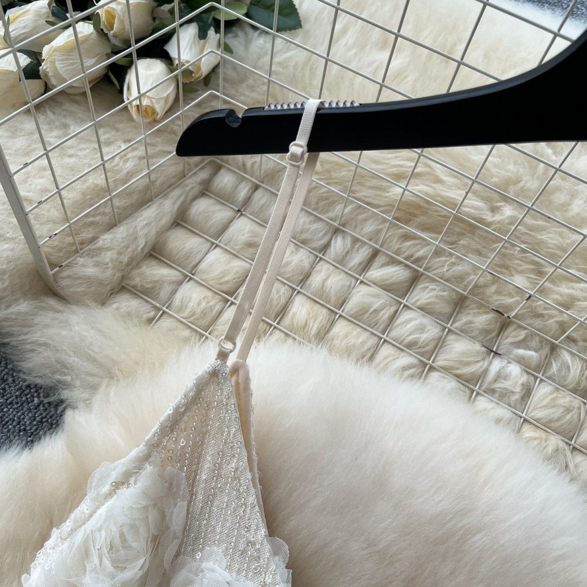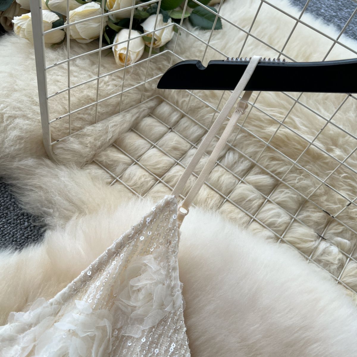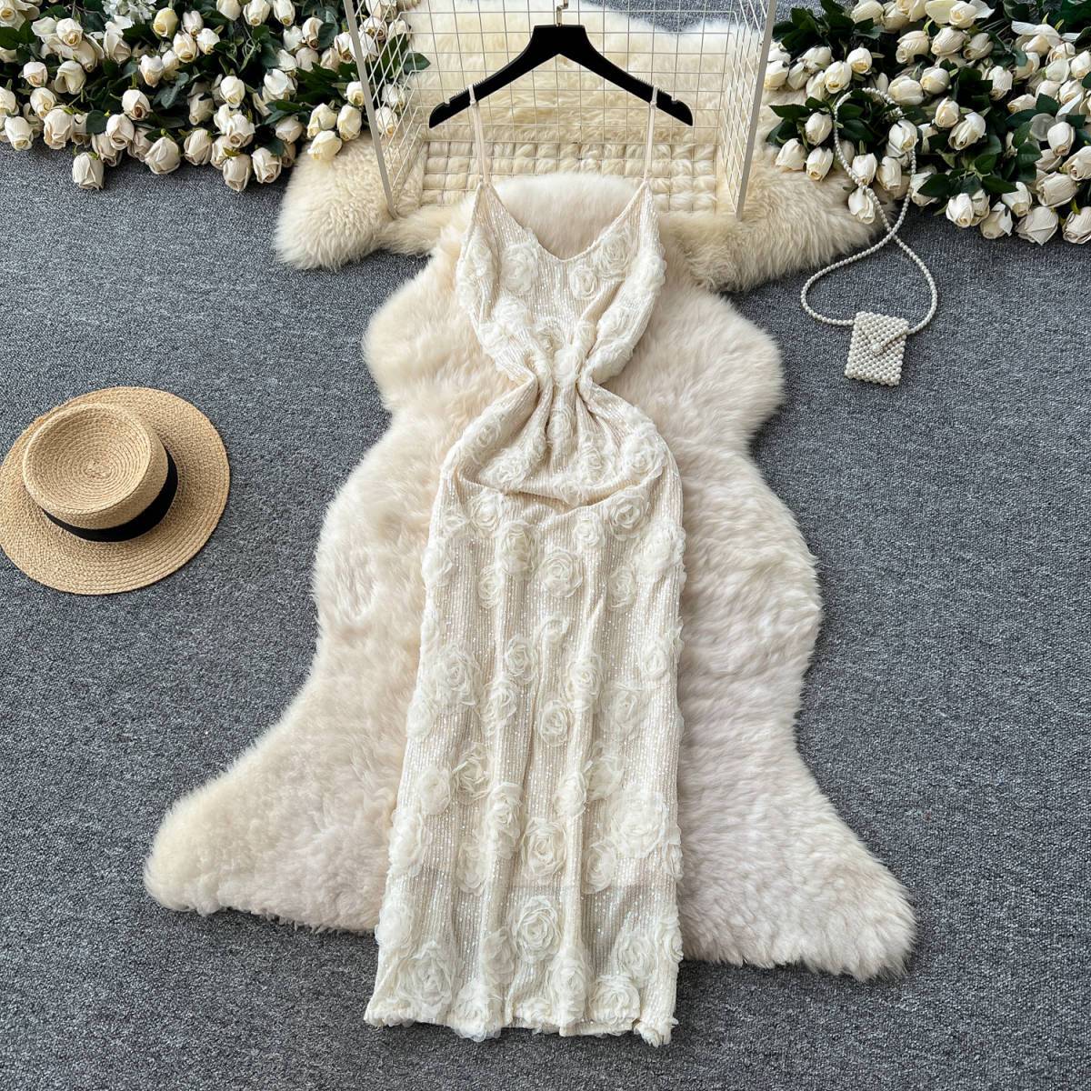 P light luxury celebrity high-end three-dimensional flower sequin dress women's summer French waist slim-fitting hip-wrapped long skirt