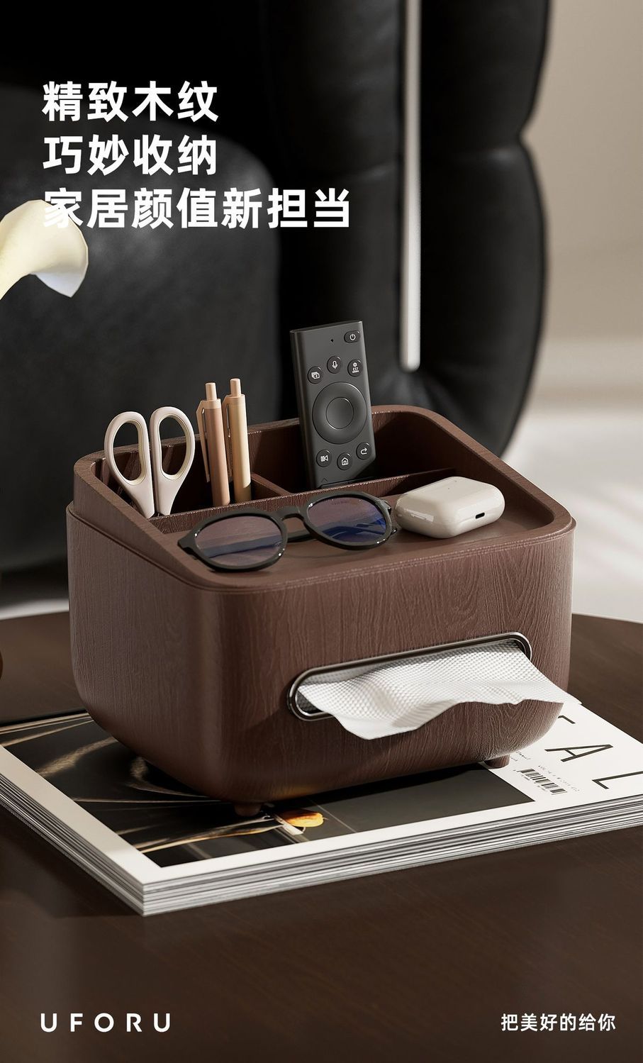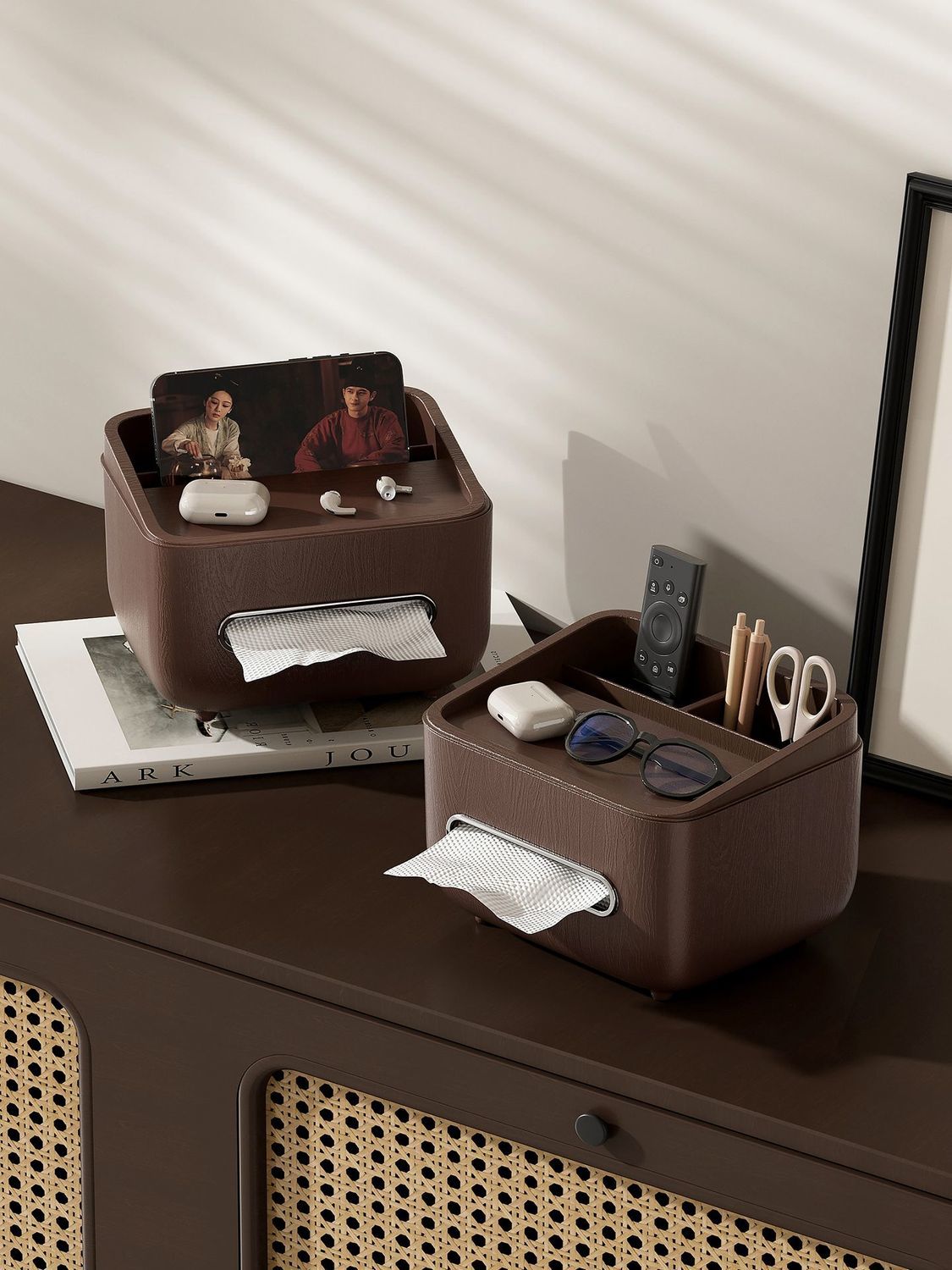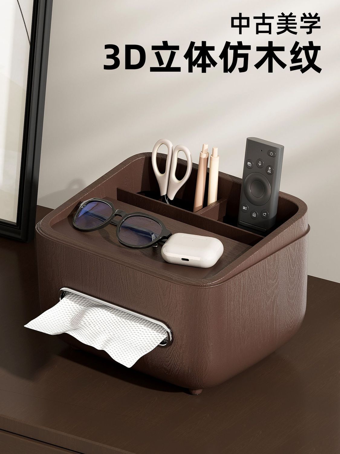 P lwood grain tissue box high value living room coffee table desktop carton multi-function remote control tissue storage box