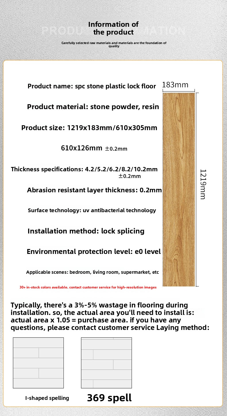 A lock floor SPC stone plastic floor snap-on stone crystal composite wood floor household old ground renovation waterproof fire