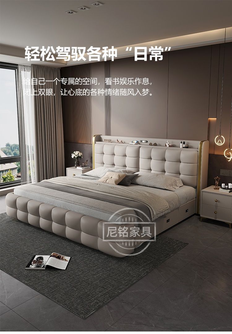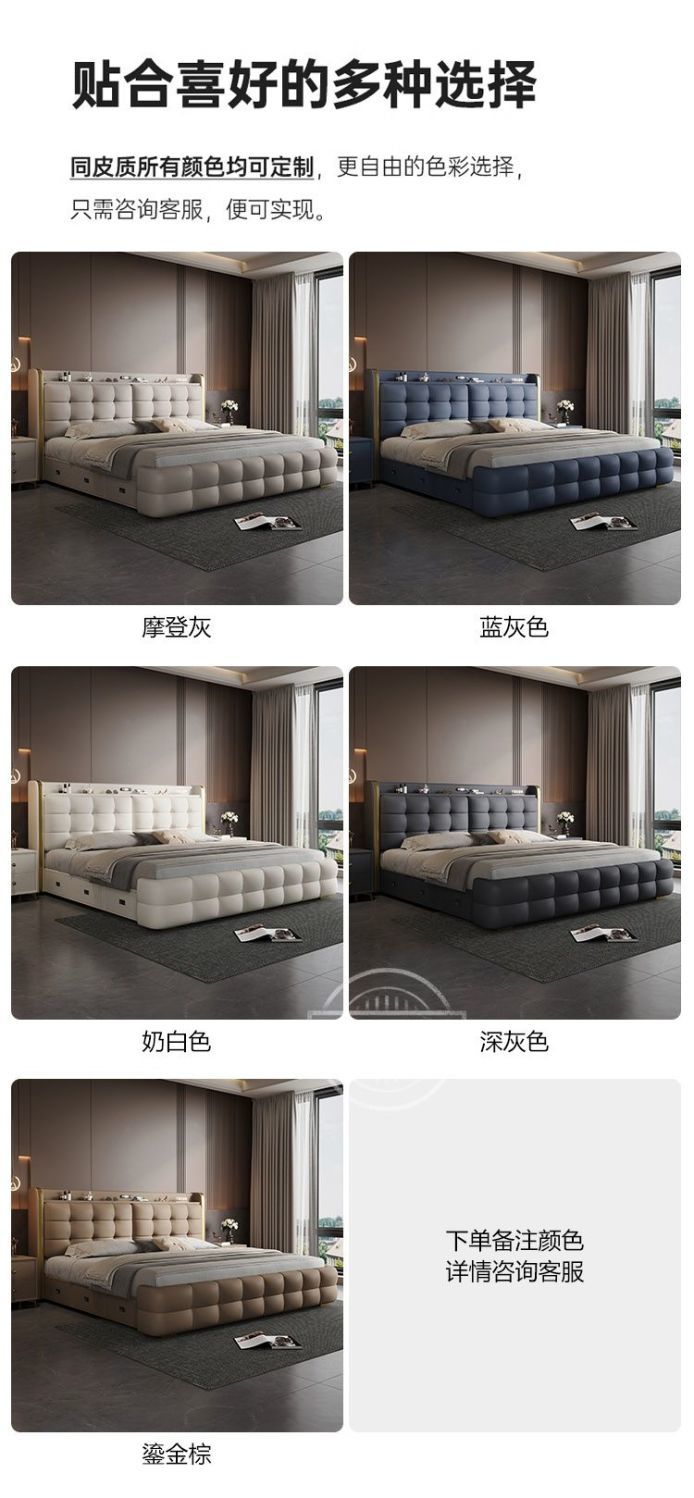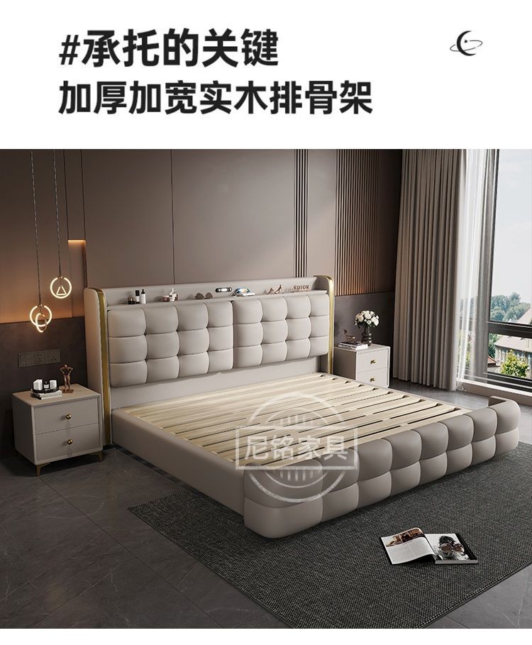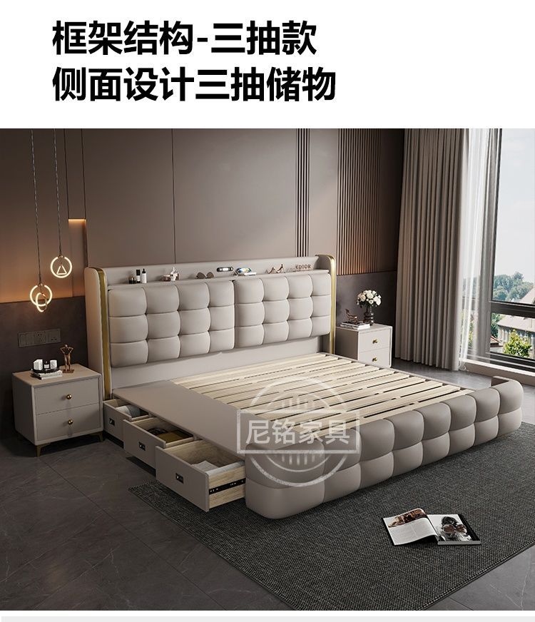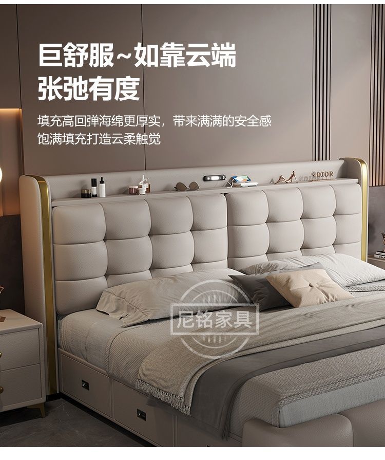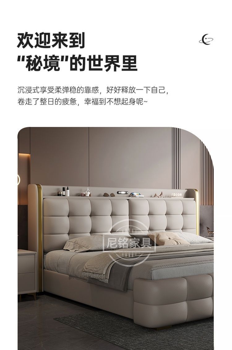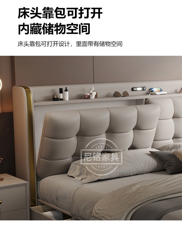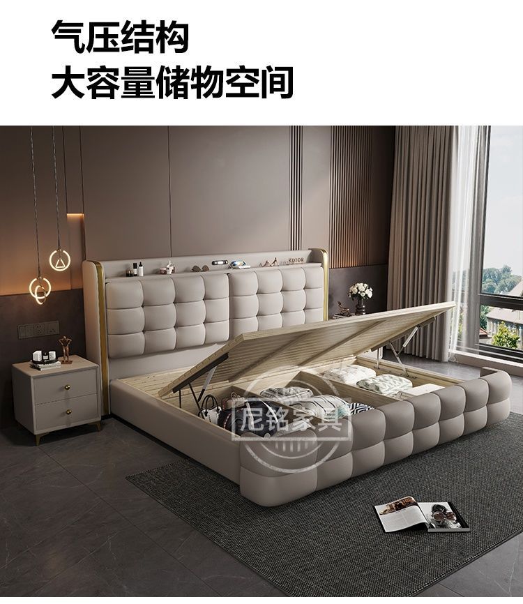 P Multifunctional storage Italian leather bed Light luxury luxury double master bedroom large bed Modern simple high-end soft bag wedding bed