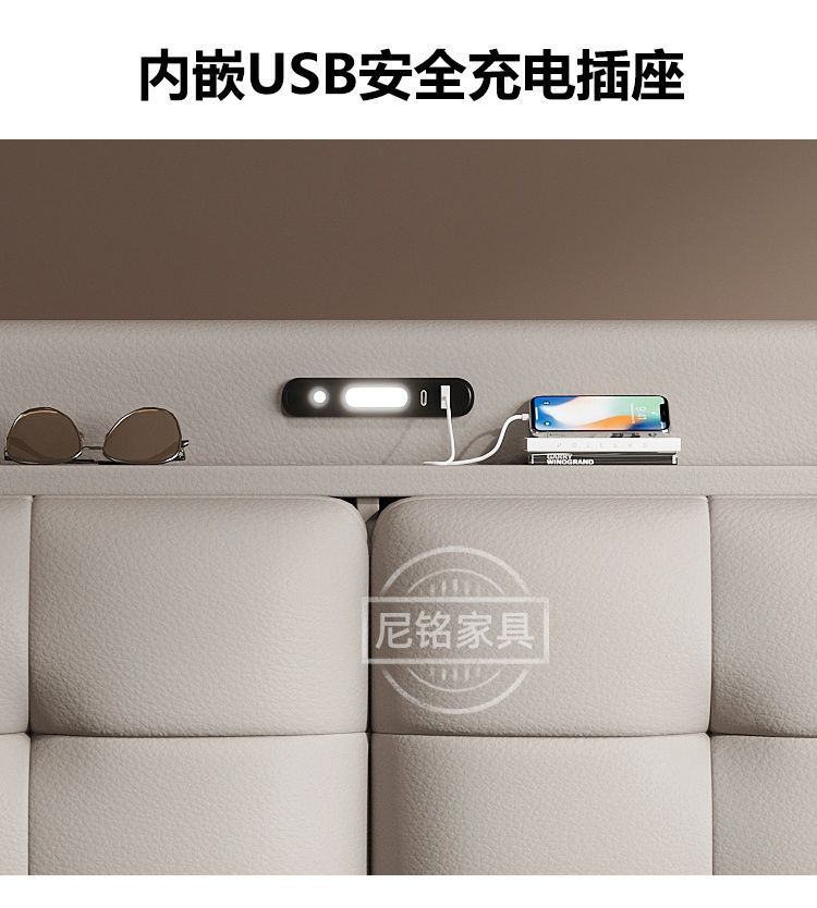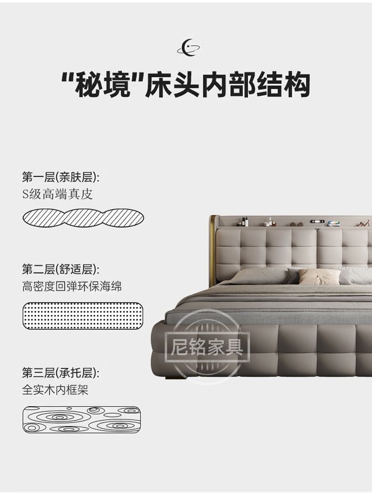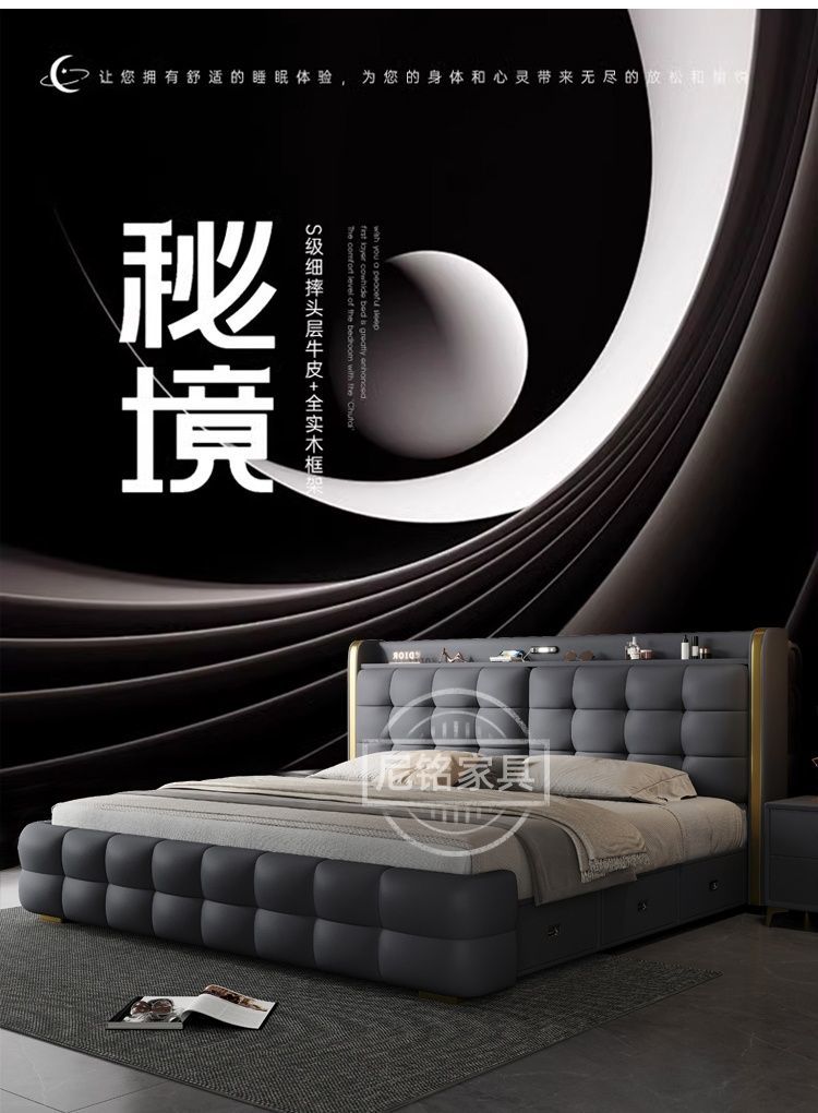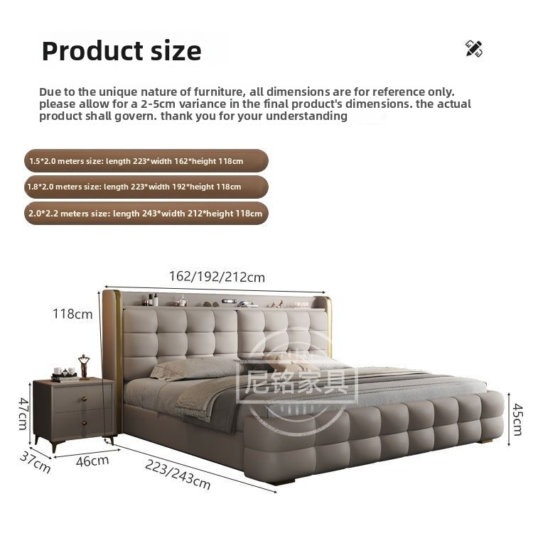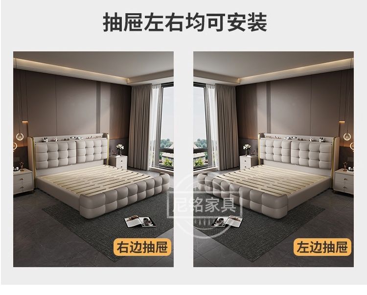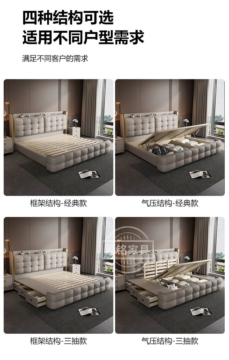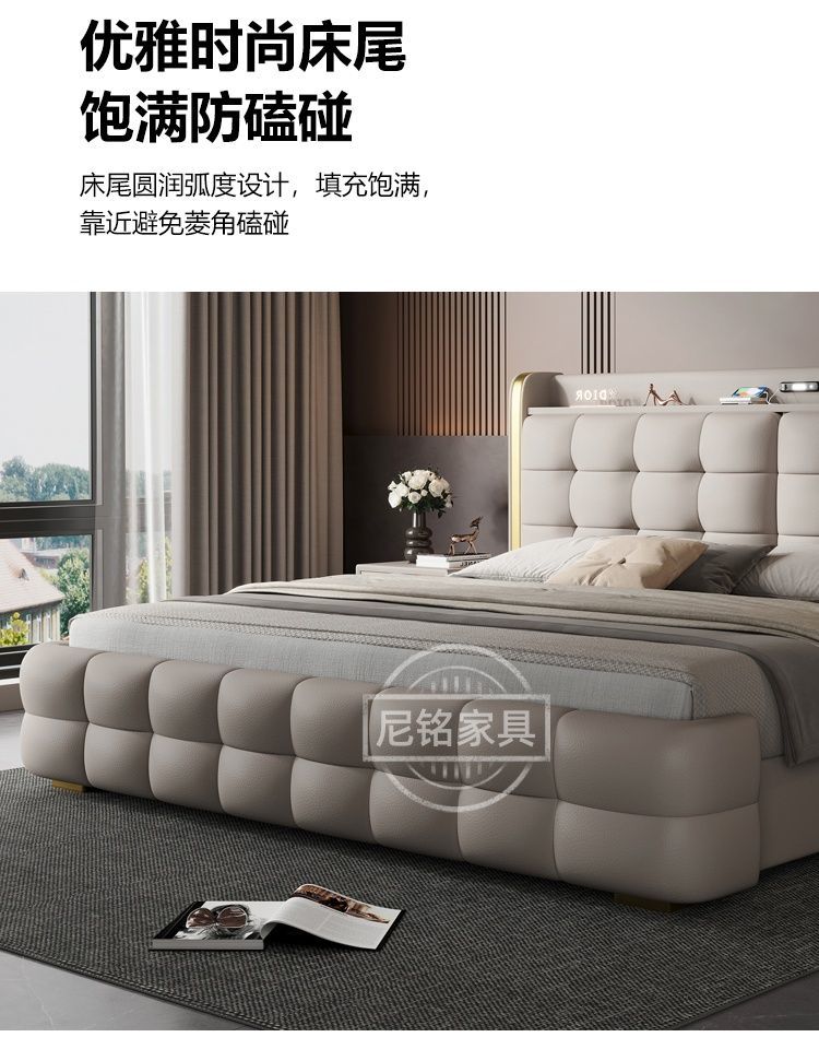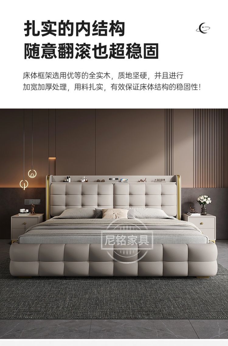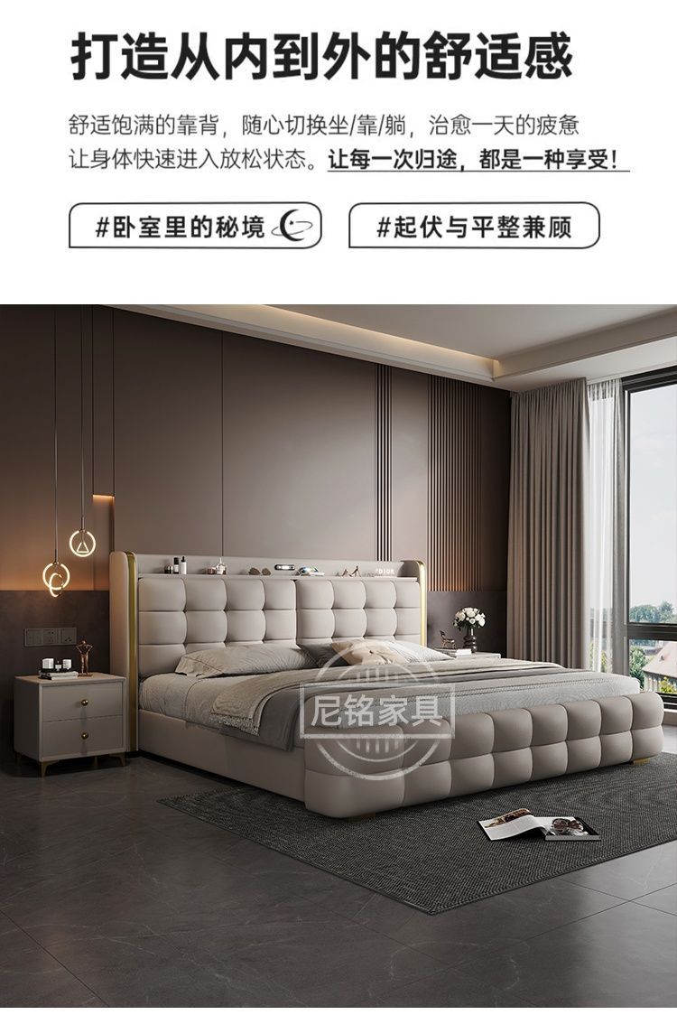 P Multifunctional storage Italian leather bed Light luxury luxury double master bedroom large bed Modern simple high-end soft bag wedding bed