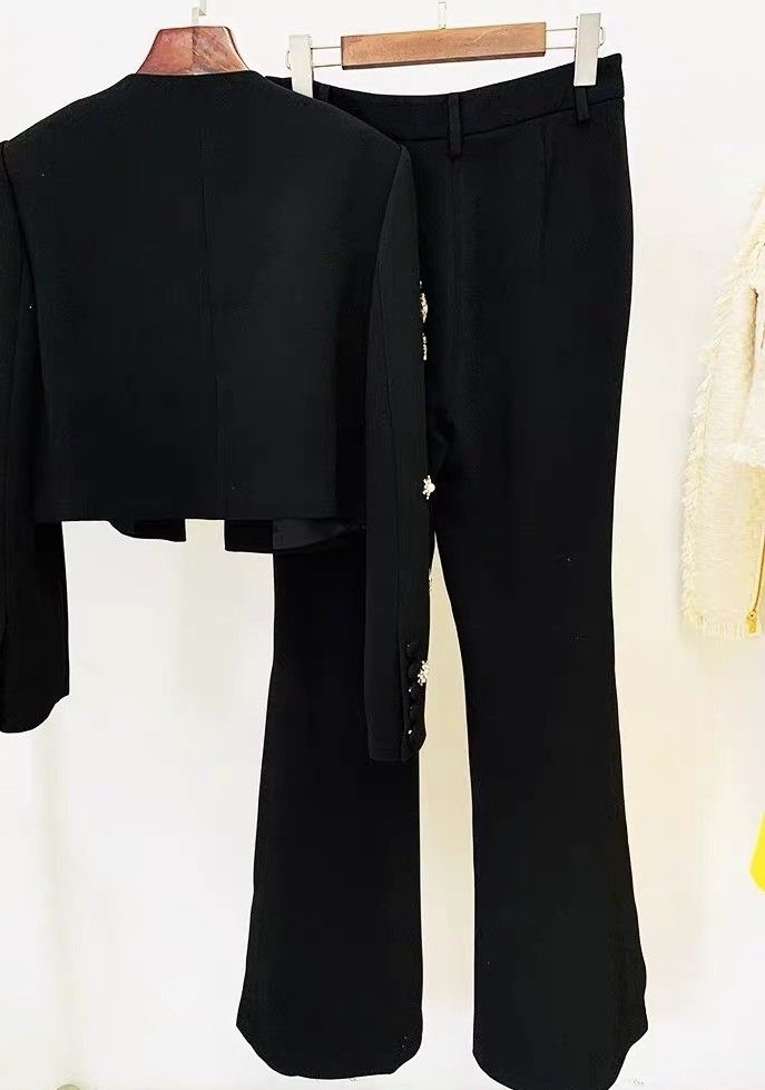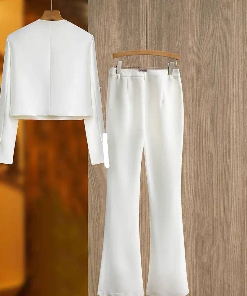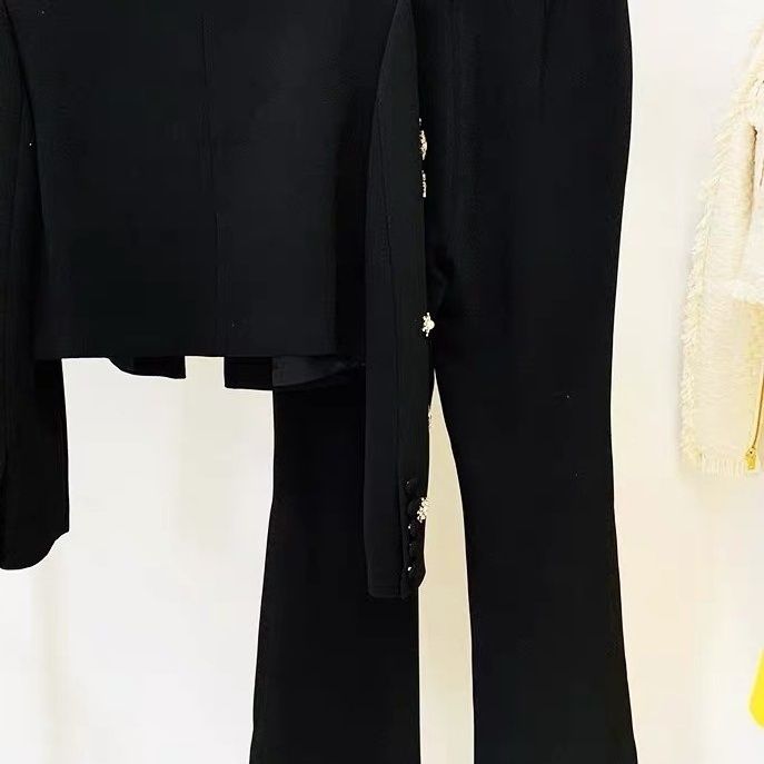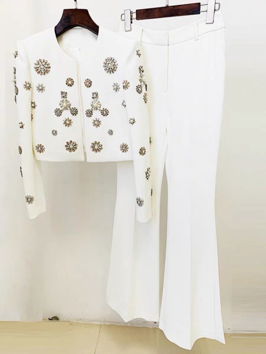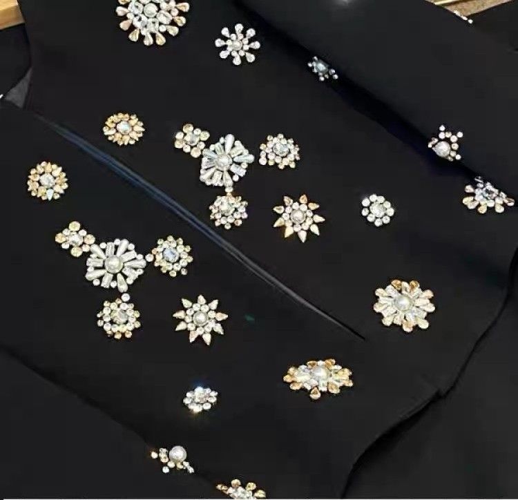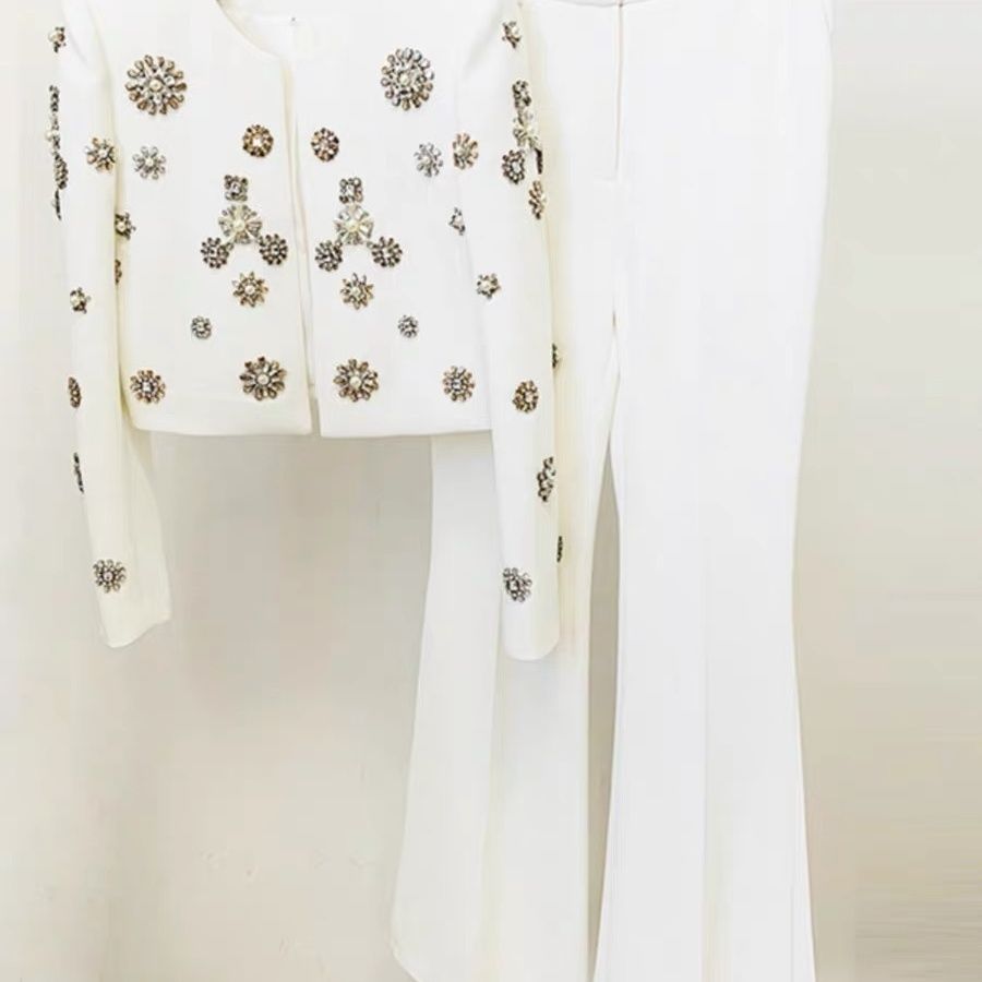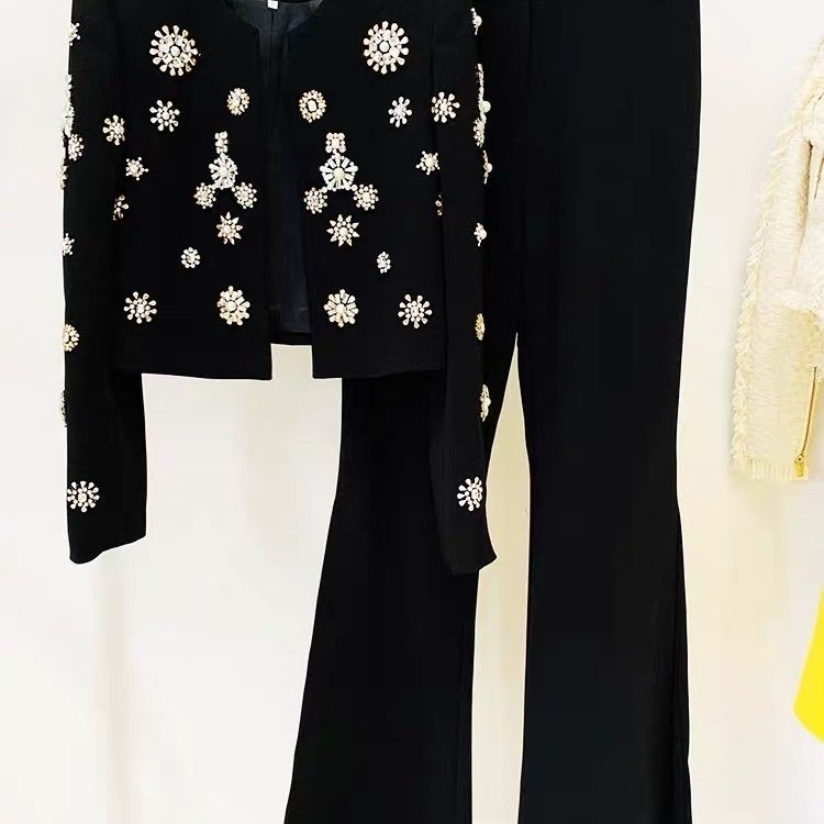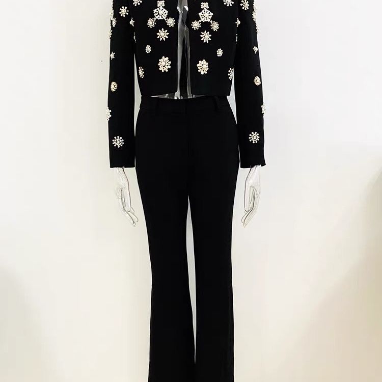 A Heavy Industry Bead Crew Neck Short Fashion Jacket Set Two-piece Premium