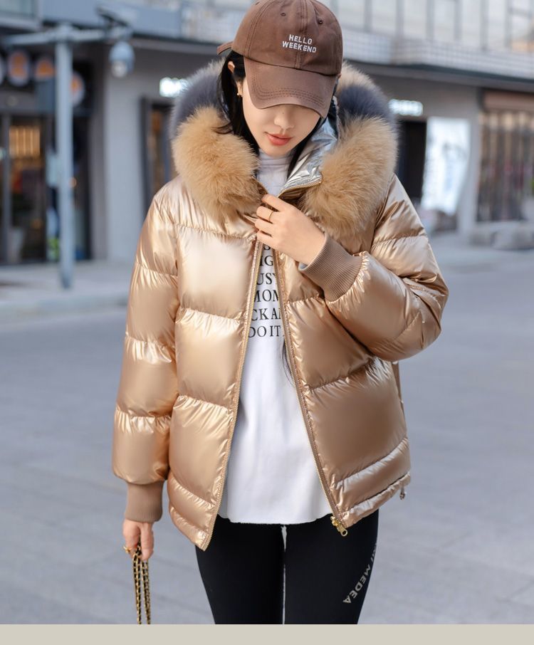 A short fox fur down jacket for women