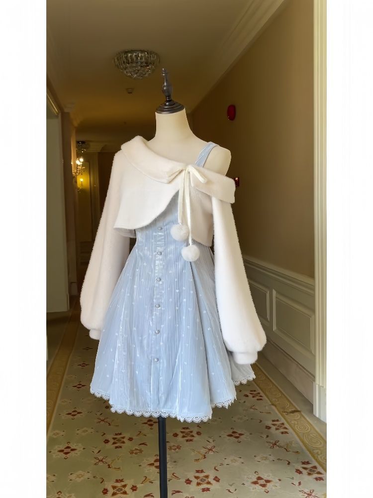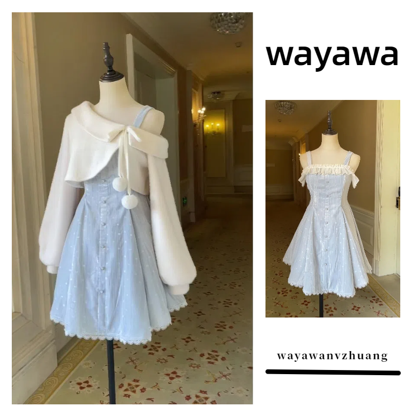 P girly autumn and winter long-sleeved soft waxy vest jacket suspender waist dress sweet age-reducing suit women