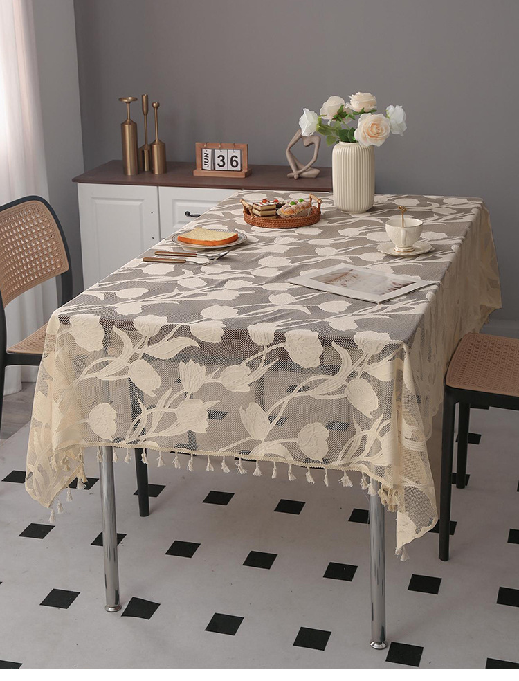 A lace rectangular table cloth