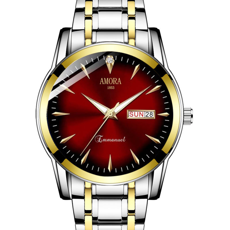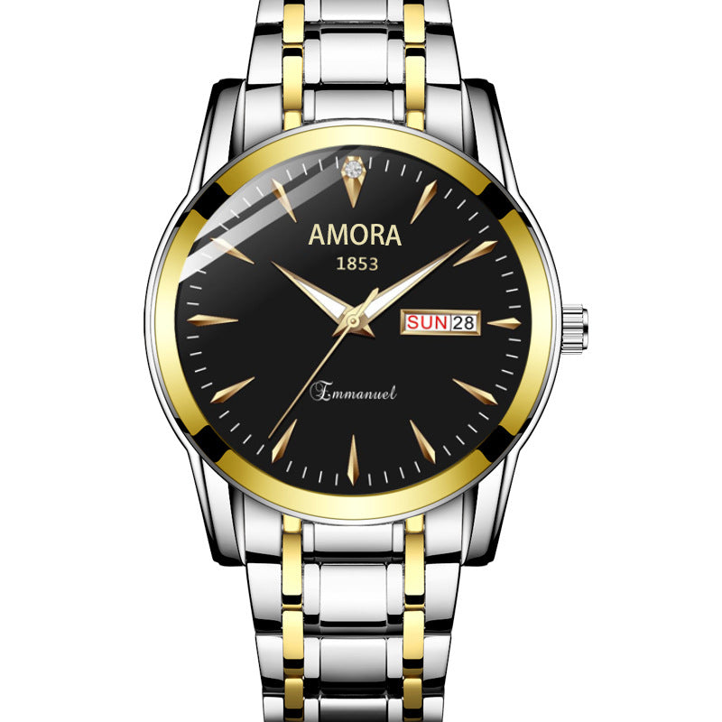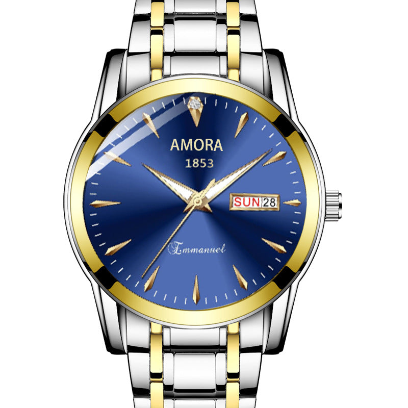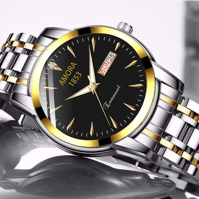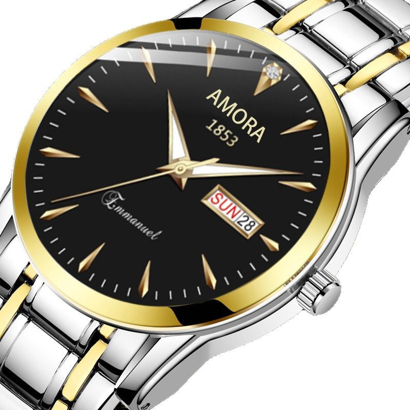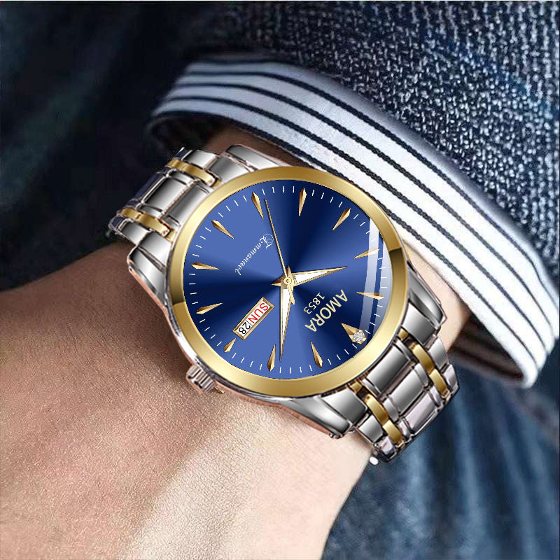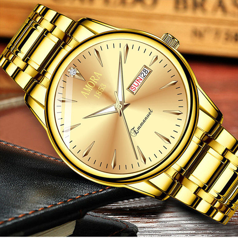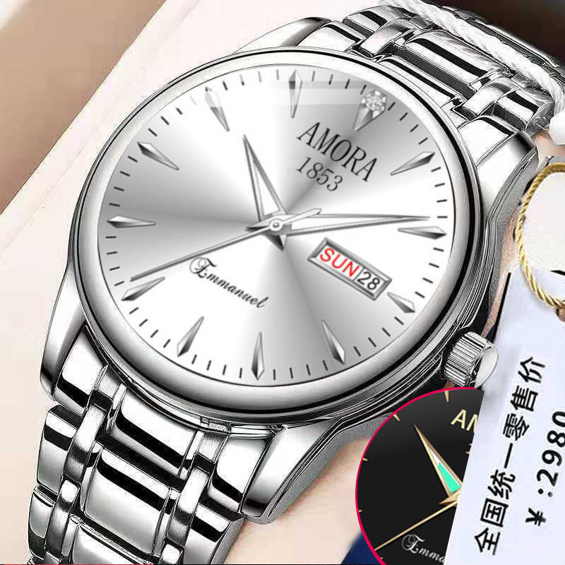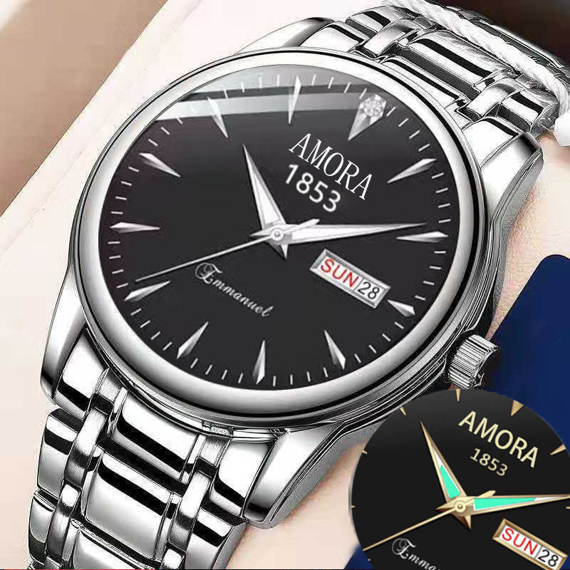 A new quartz watch men's double calendar automatic waterproof luminous business steel belt watch