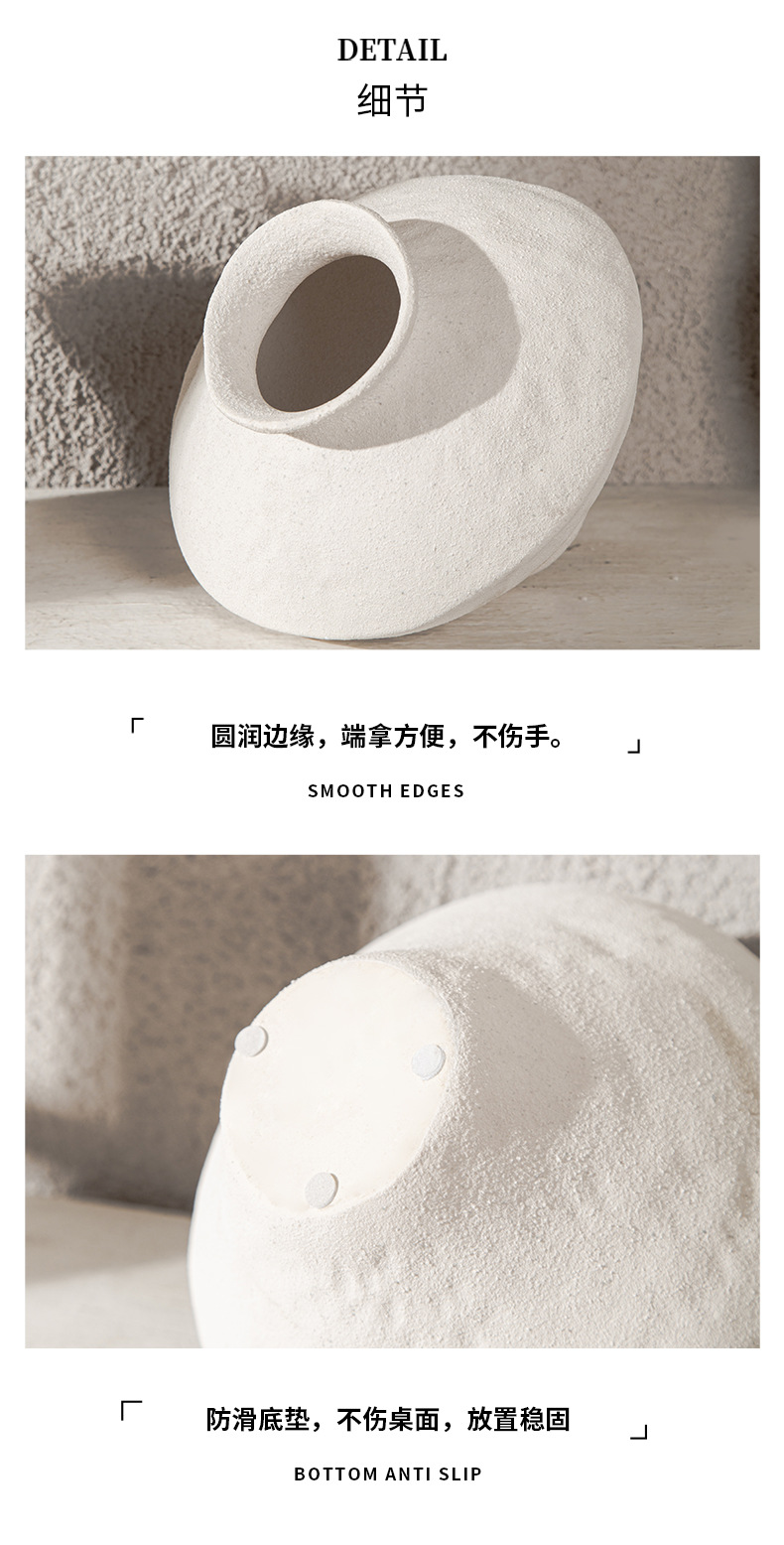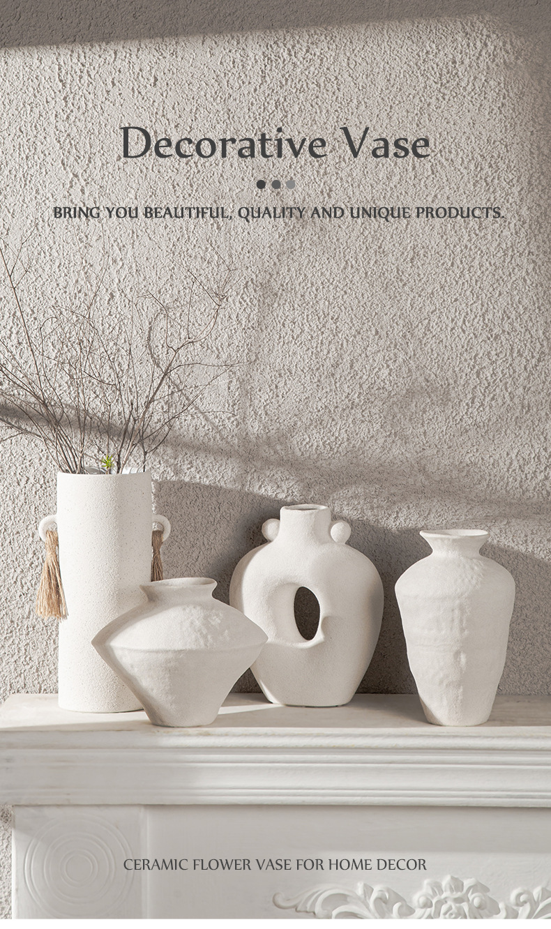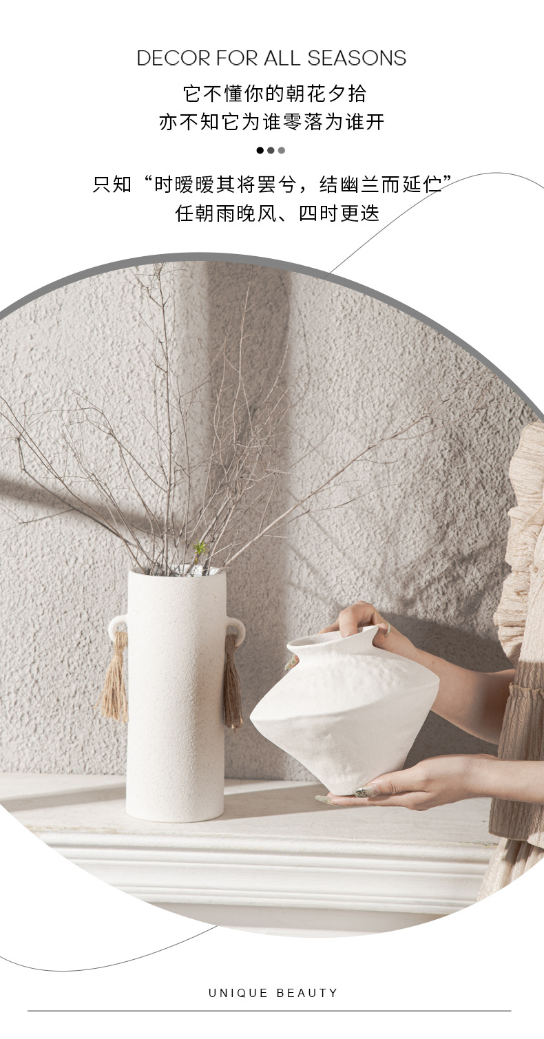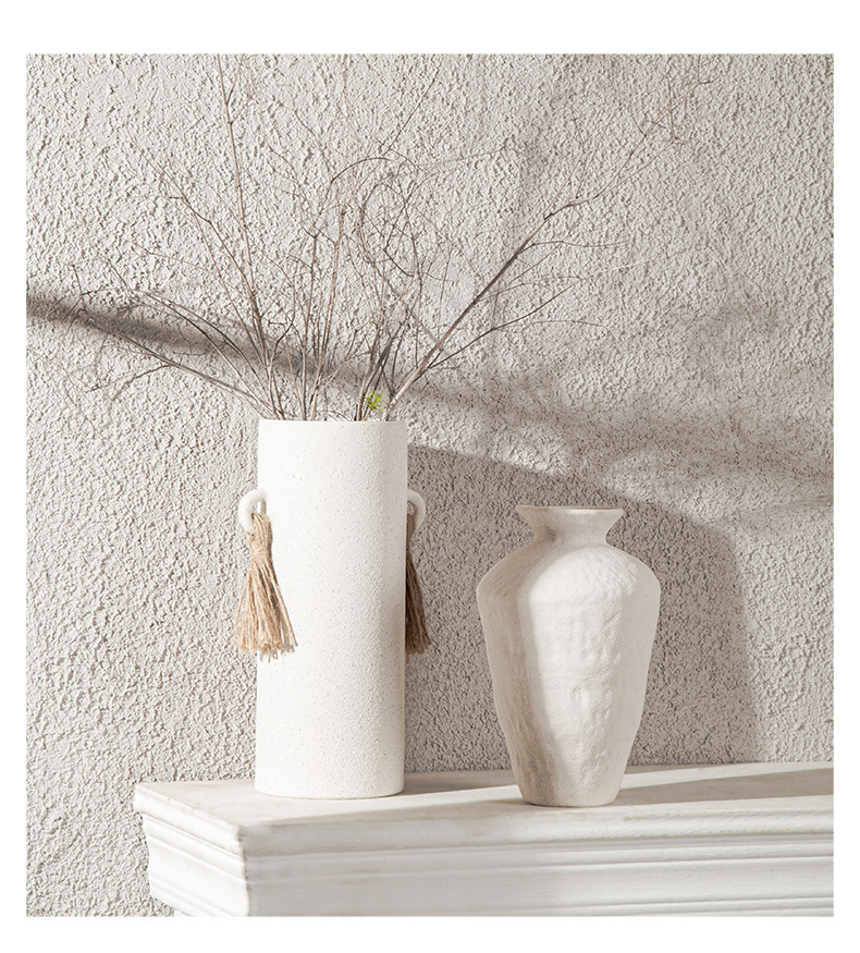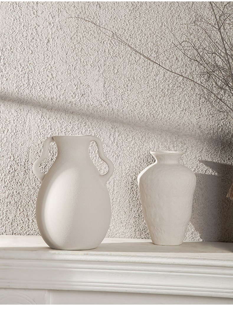 Nordic ceramic vase flower arrangement, high-end ornament, white Zen wabi-sabi art decoration, dry vase.
