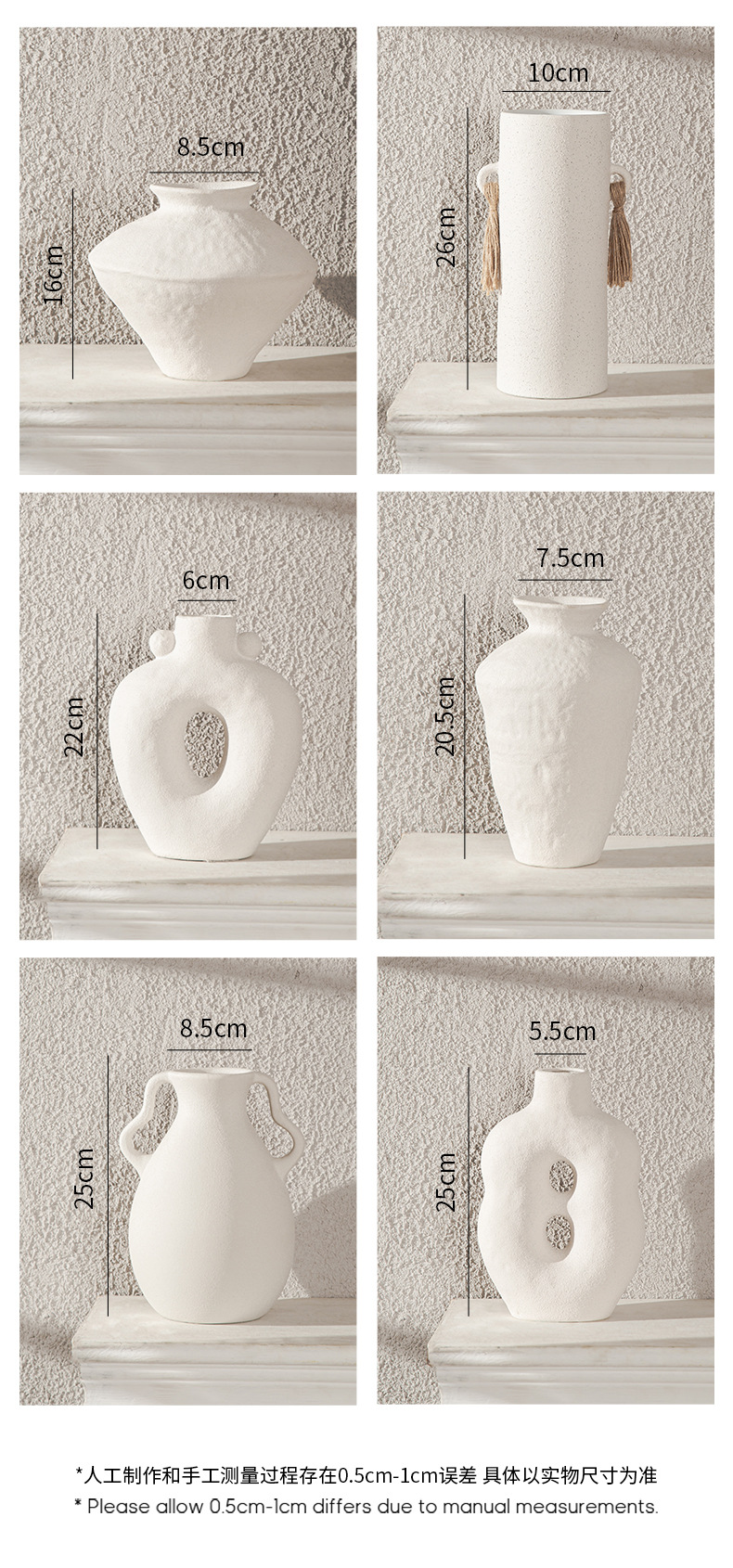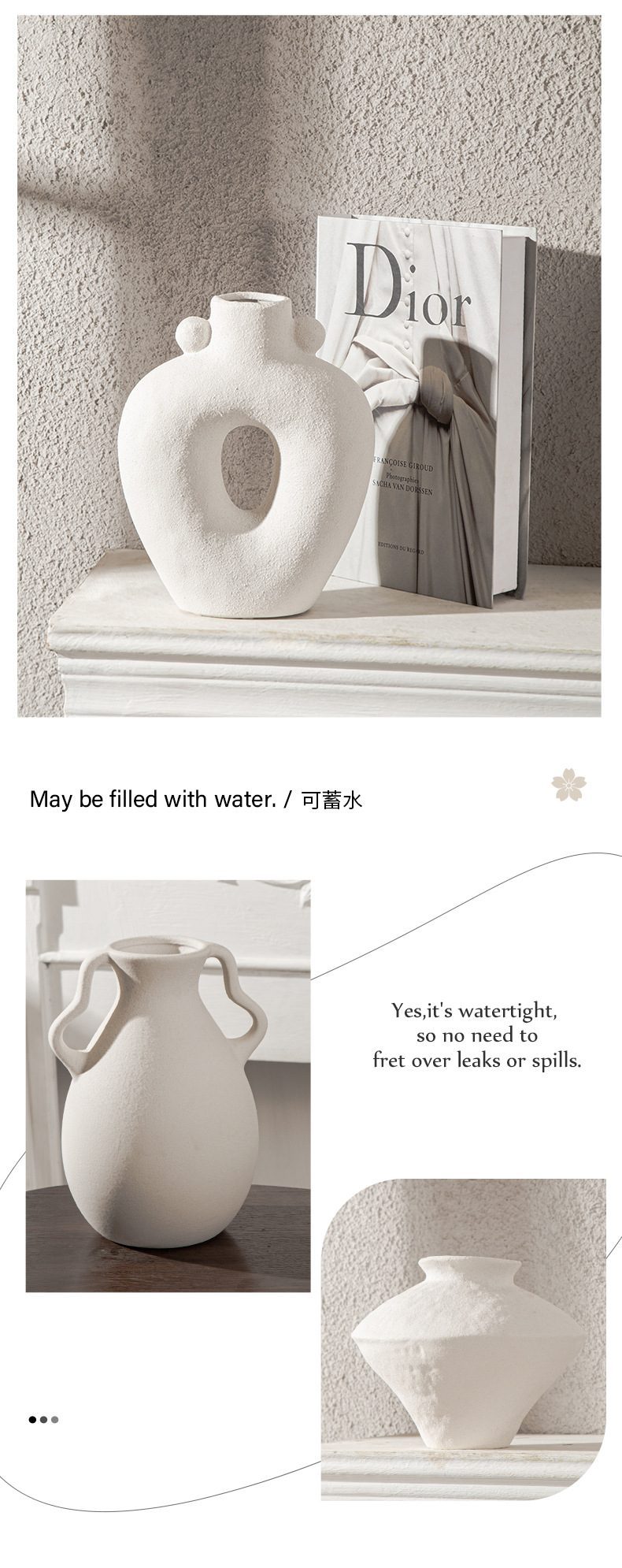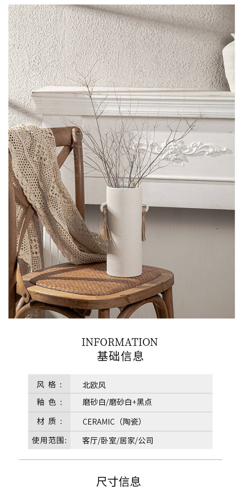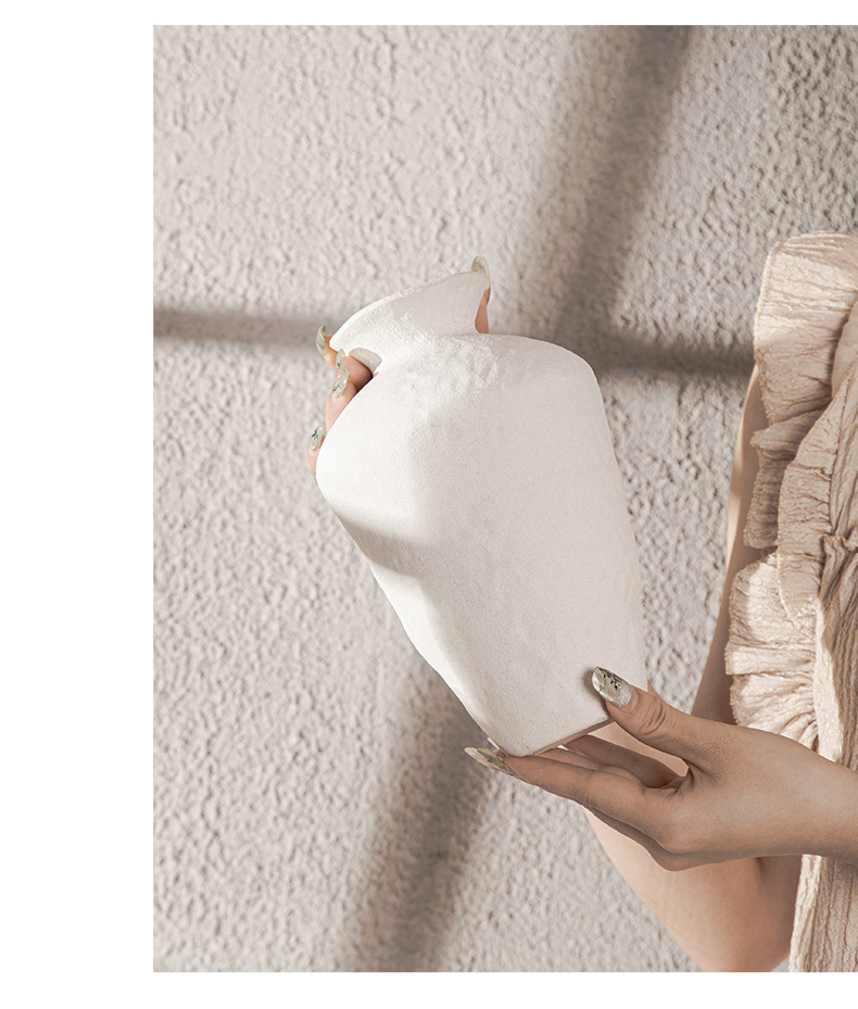 Nordic ceramic vase flower arrangement, high-end ornament, white Zen wabi-sabi art decoration, dry vase.