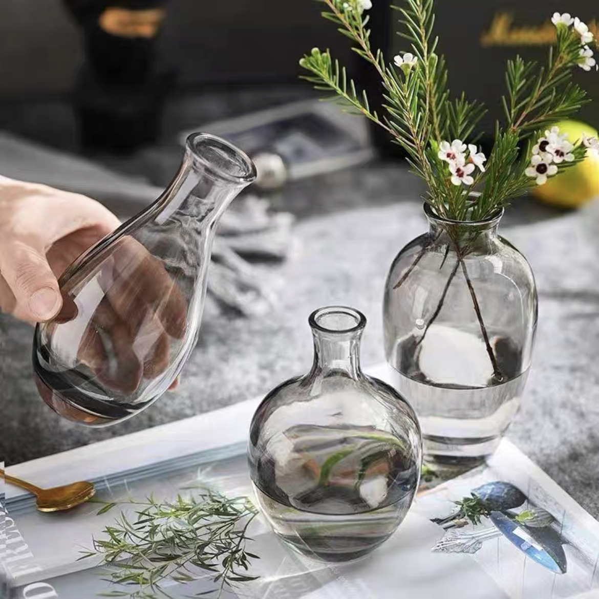 A Nordic simple and creative mini vase ins wind glass water flower cultivator living room desktop decoration small ornament