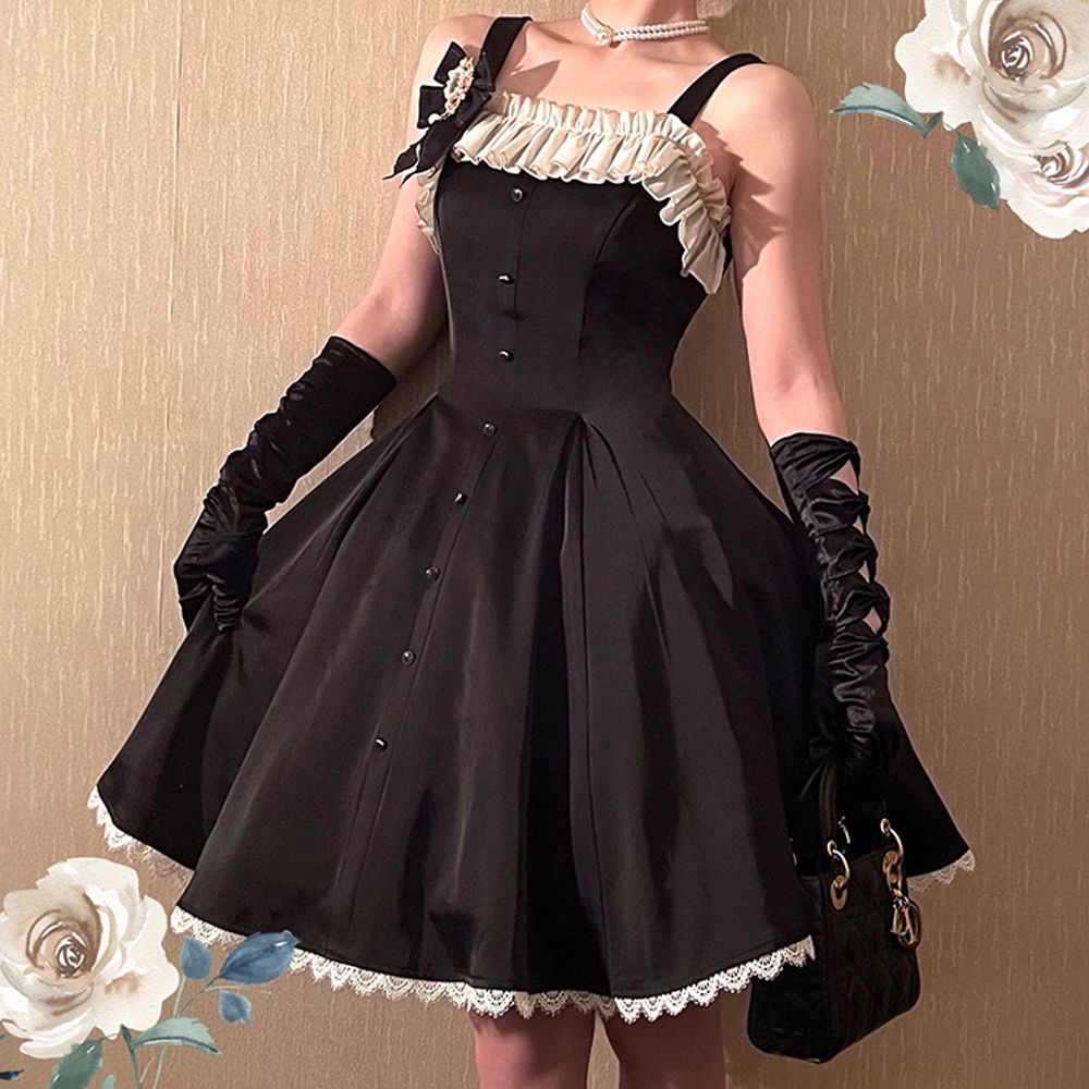 P Autumn and winter court style lady elegant cut waist light Lolita small black dress cardigan suit