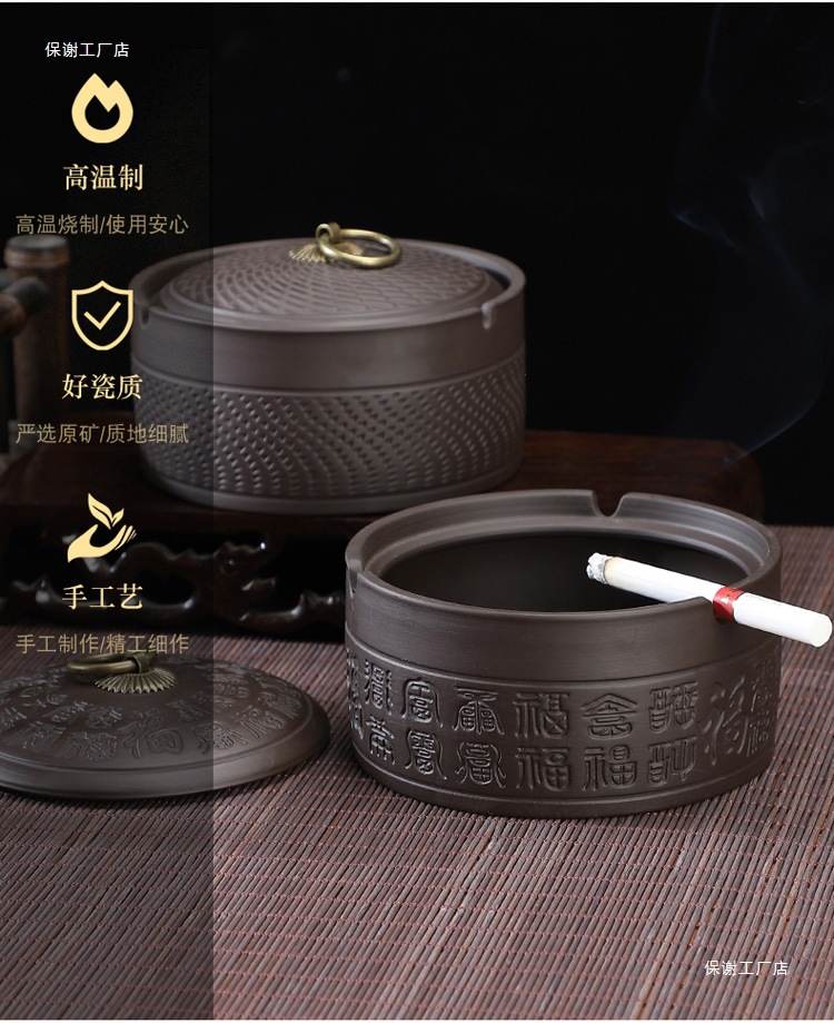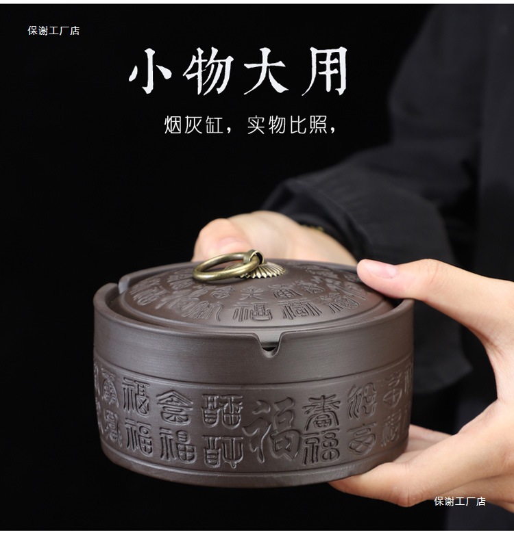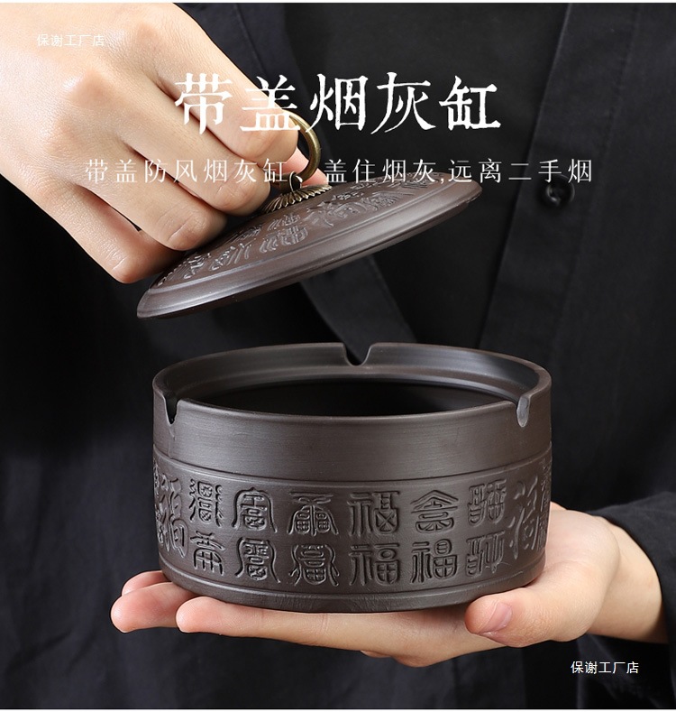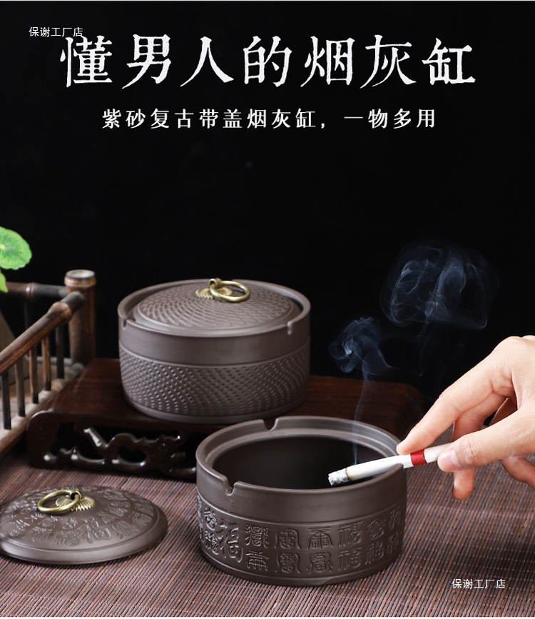 A Purple sand ashtray with lid anti-fly ash medium ceramic