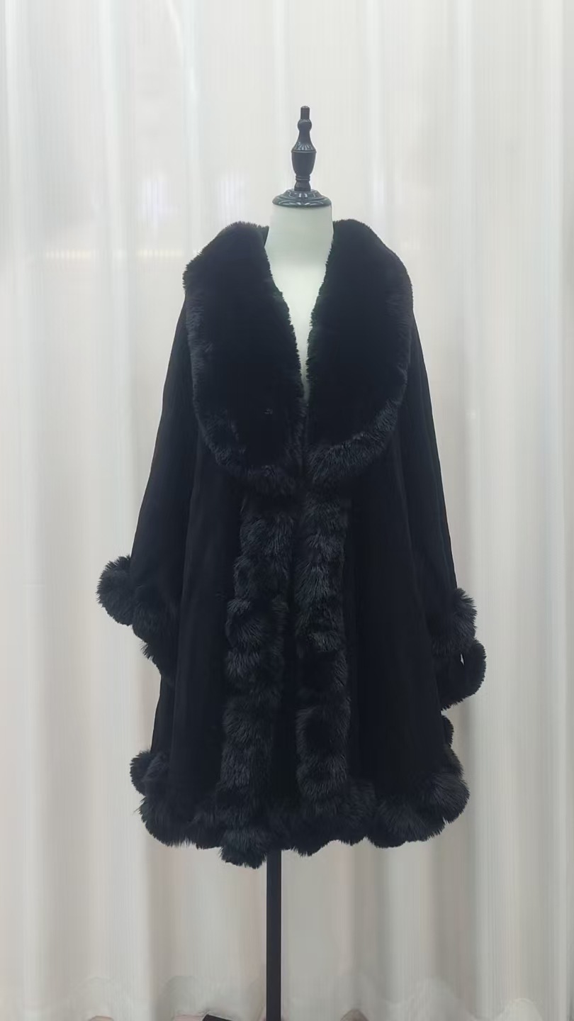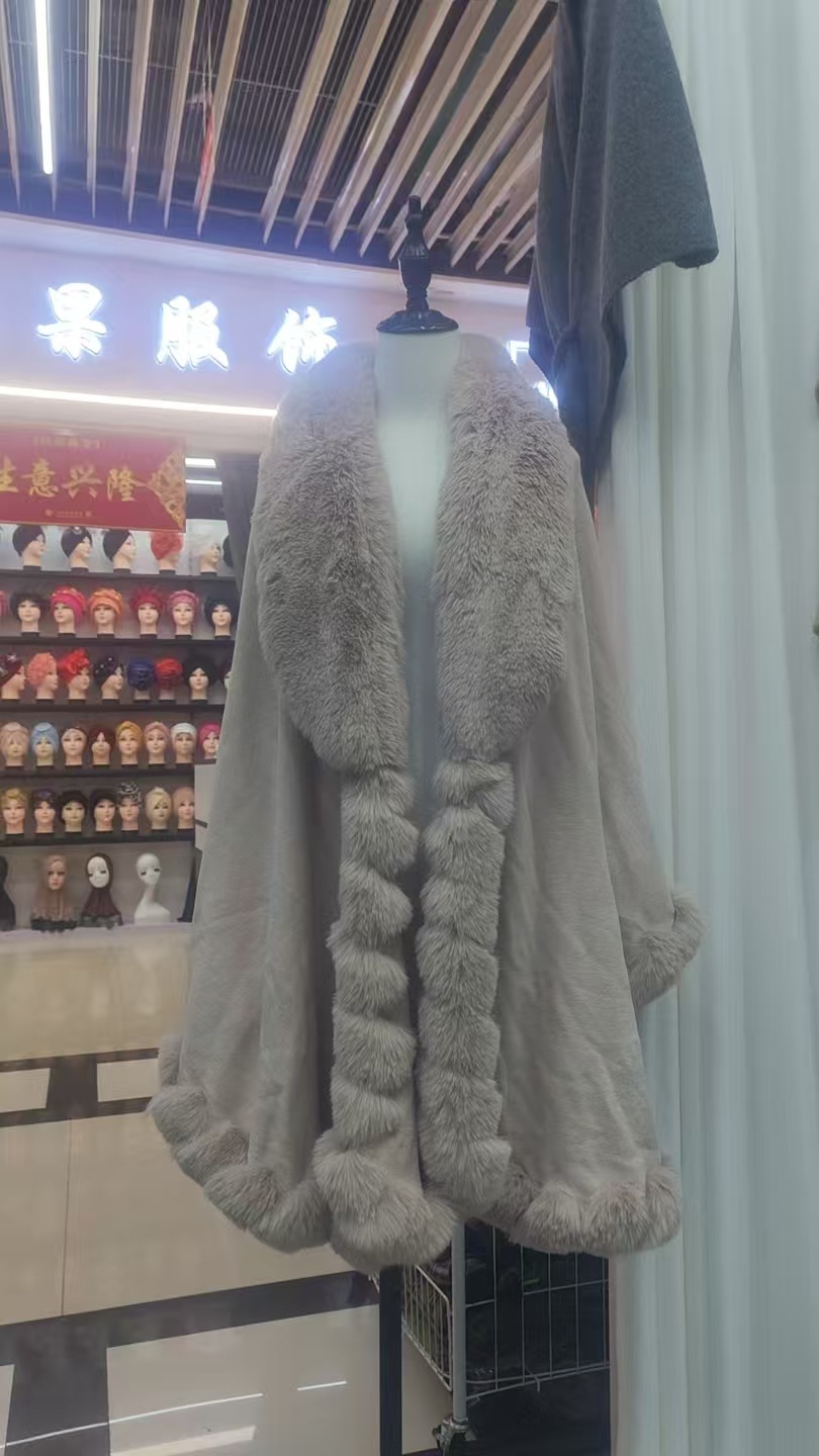A Rabbit fur large lapel handmade wool cross-border European and American knitted imitation cashmere cardigan large size shawl cape