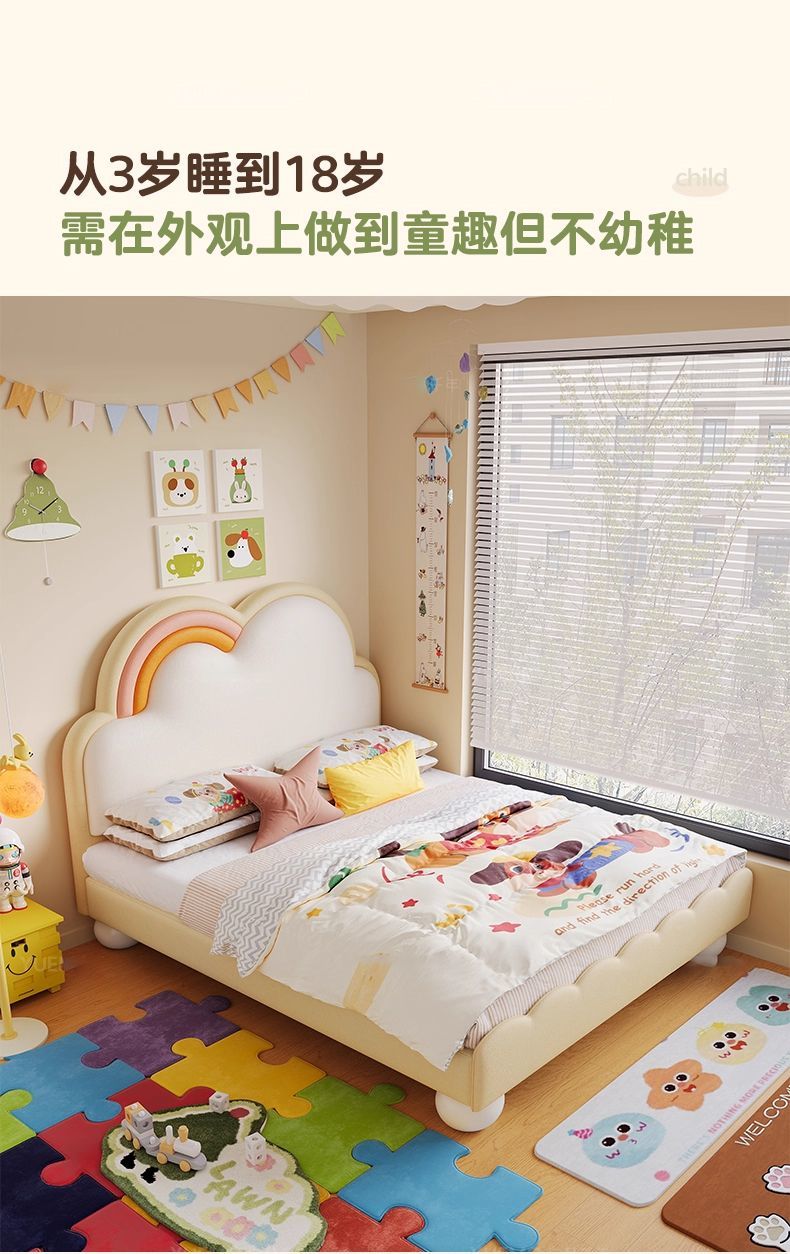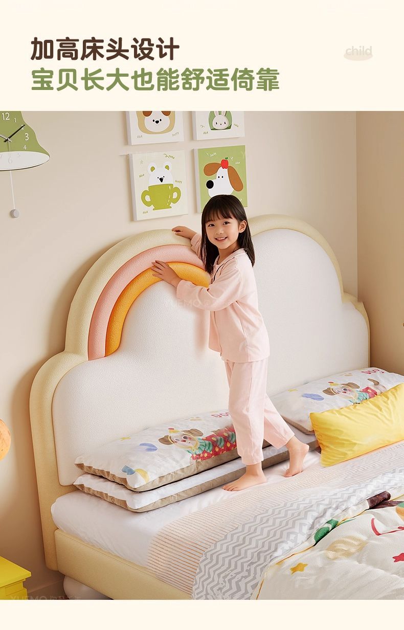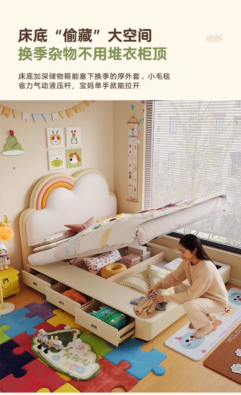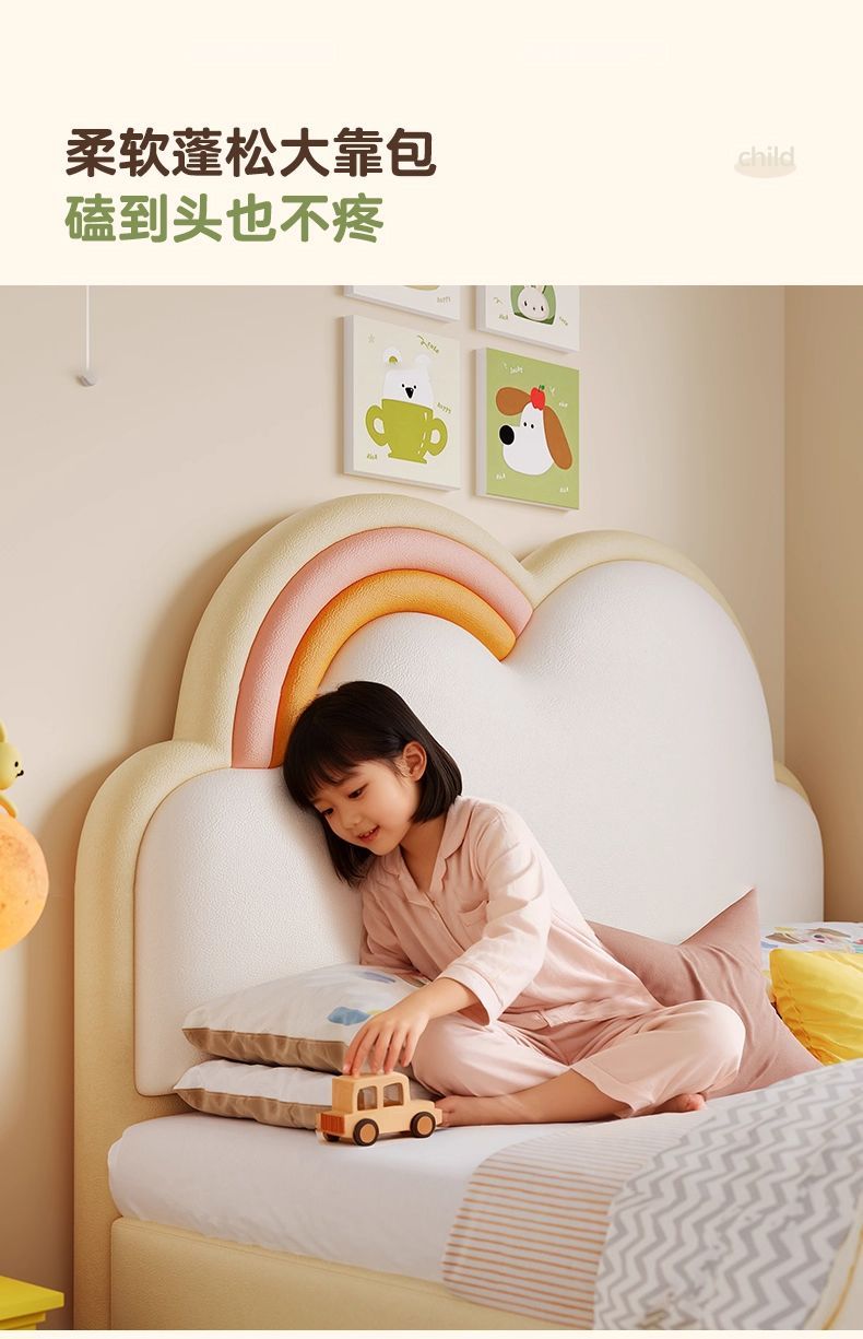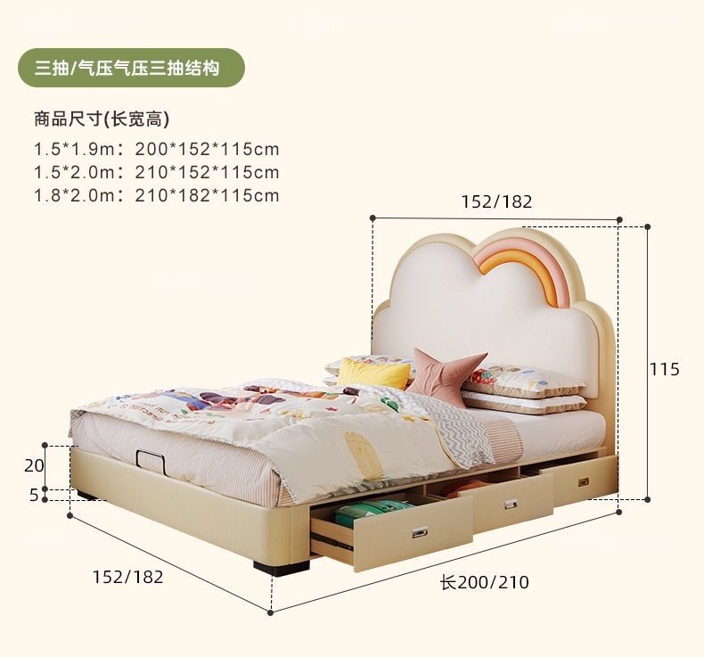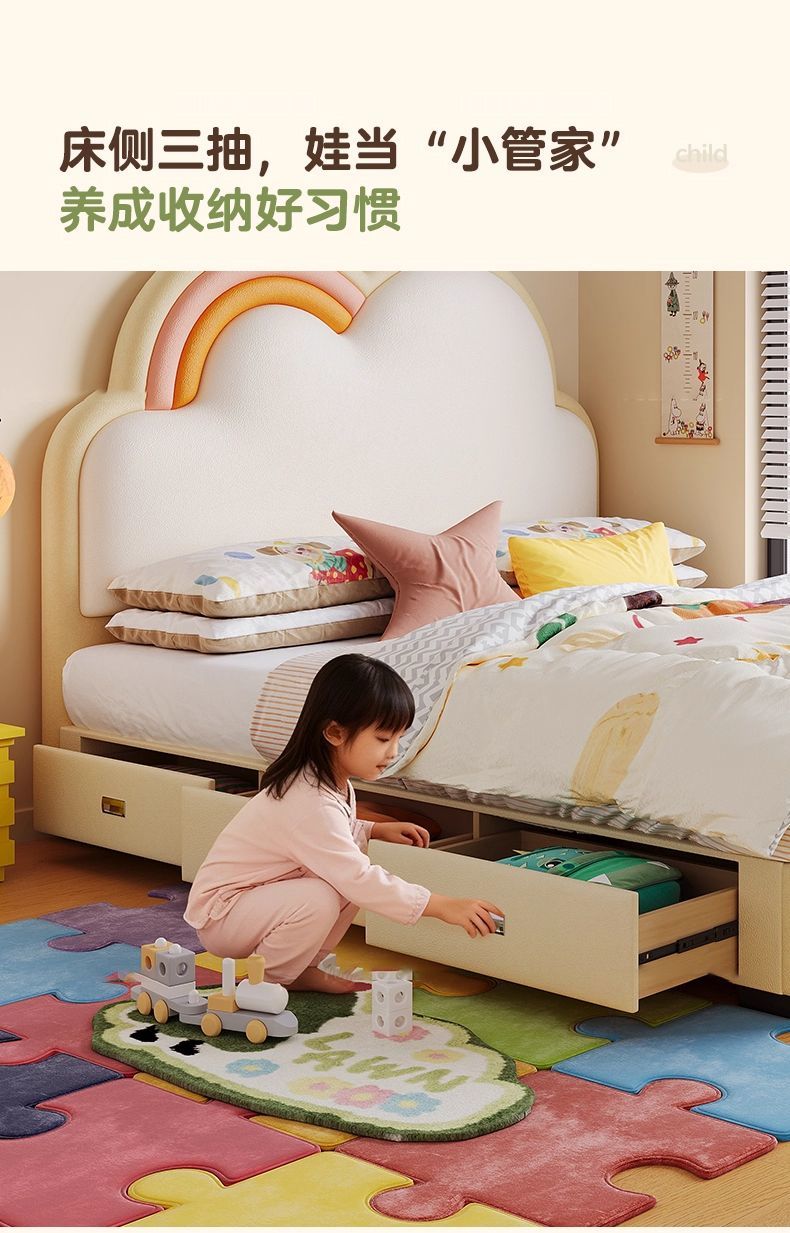 P rainbow bed boys and girls princess leather bed bedroom modern simple drawer storage small apartment children's room single bed