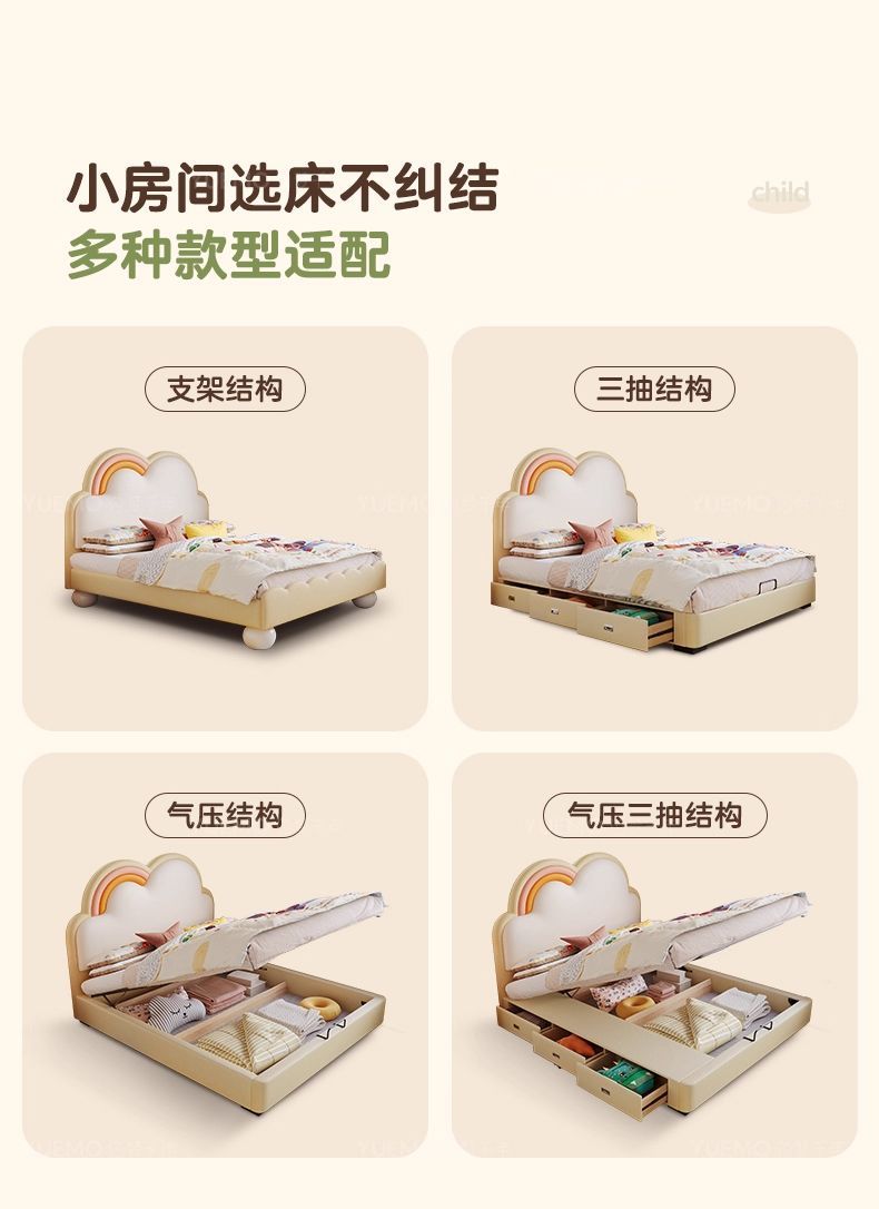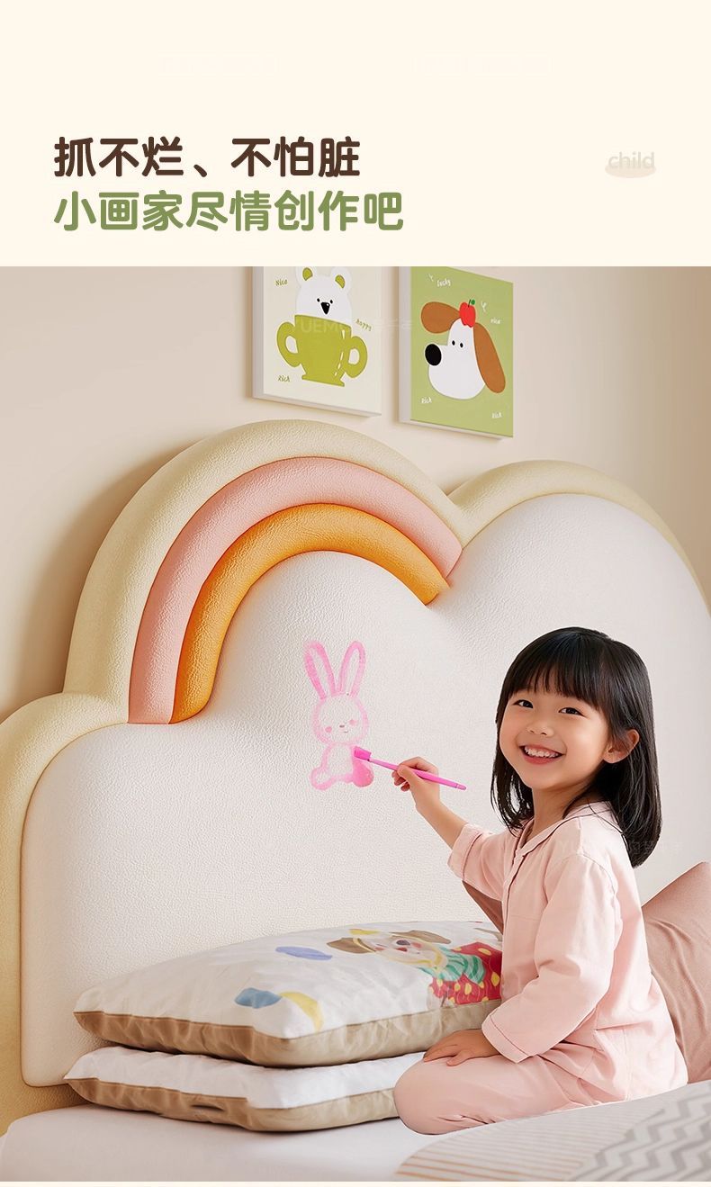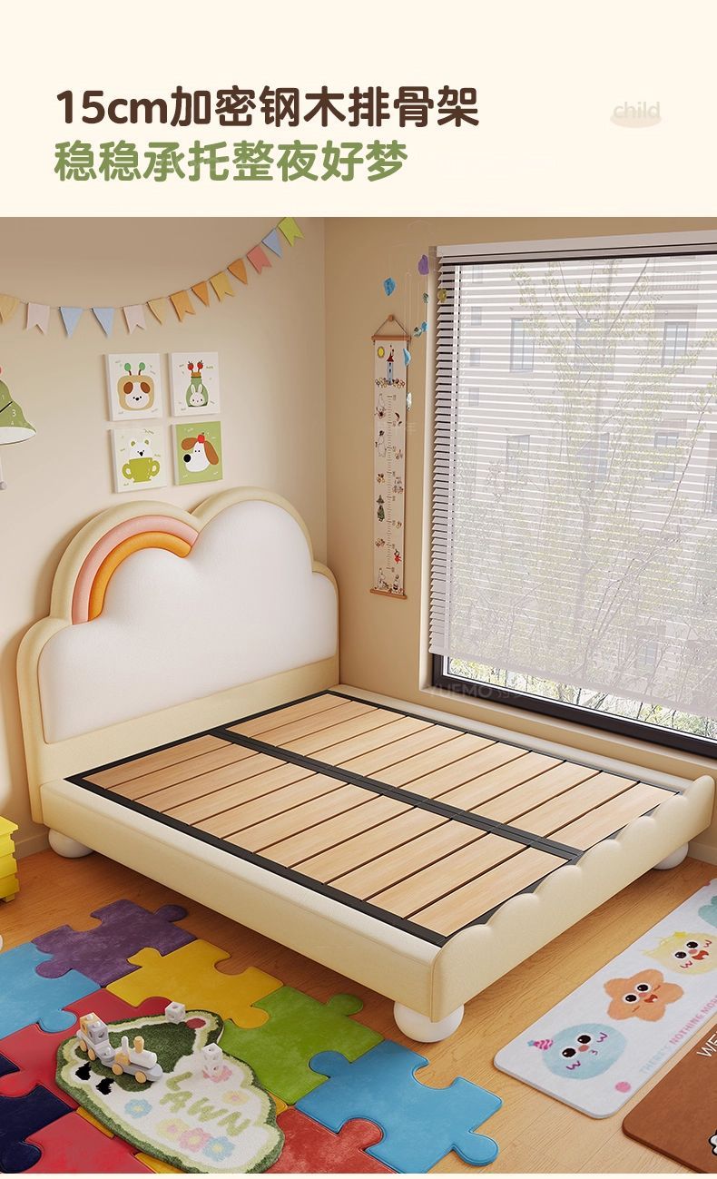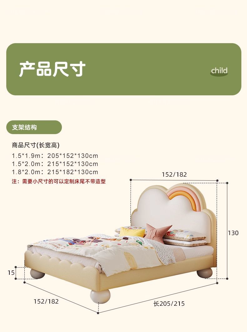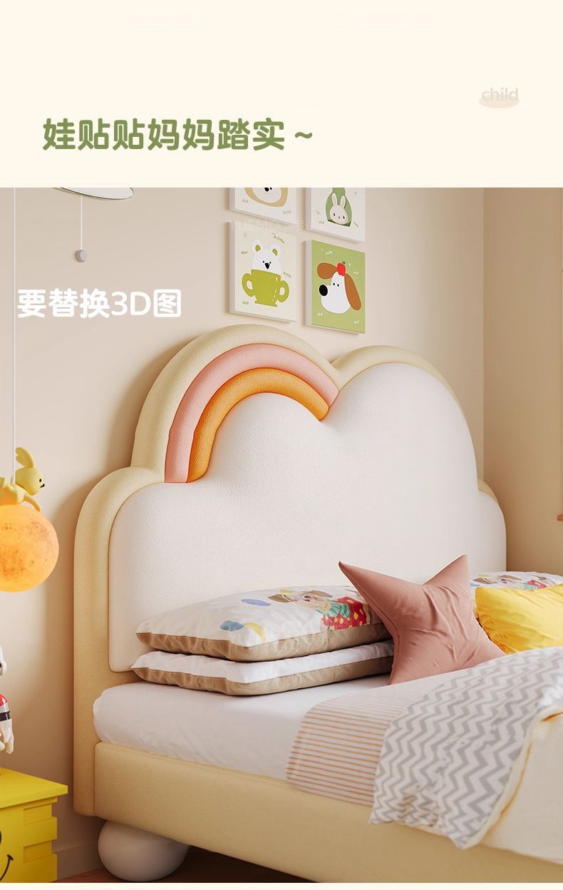 P rainbow bed boys and girls princess leather bed bedroom modern simple drawer storage small apartment children's room single bed
