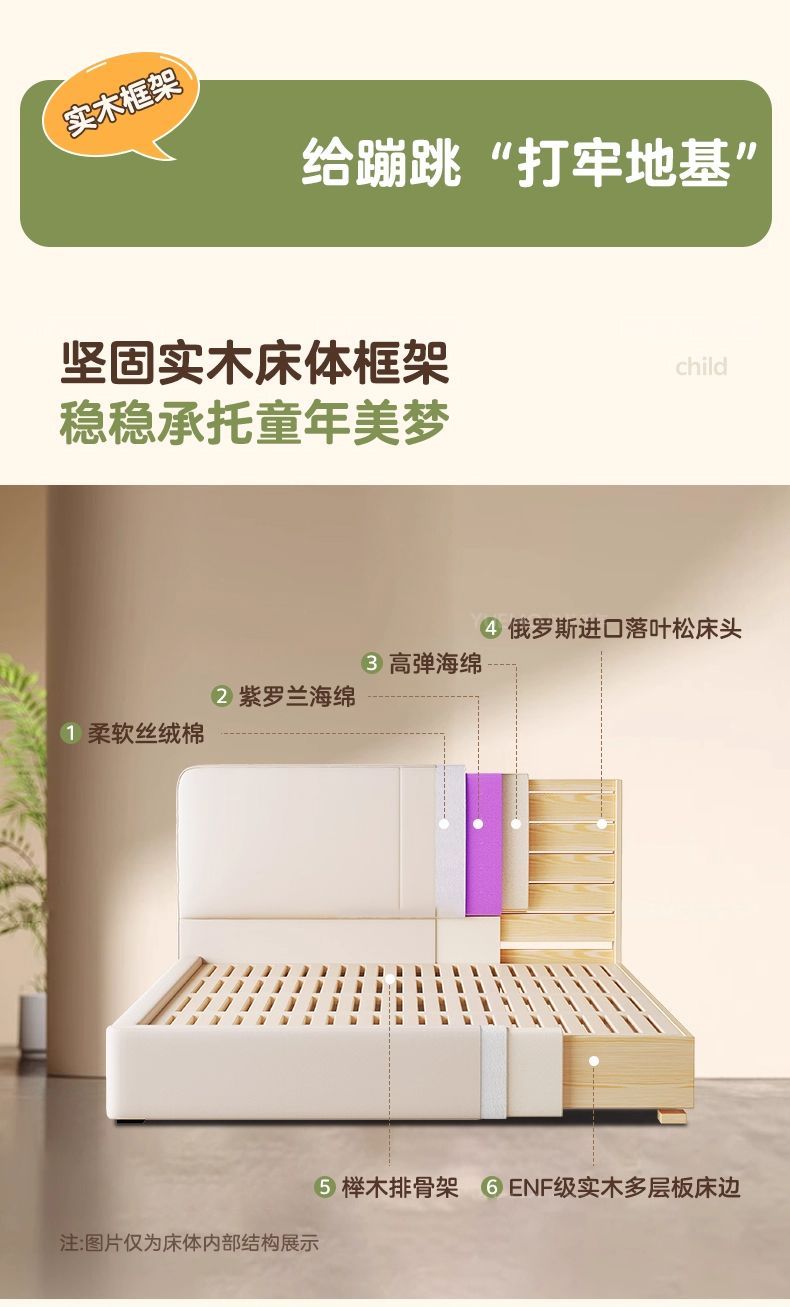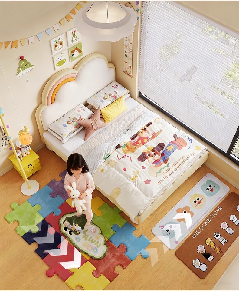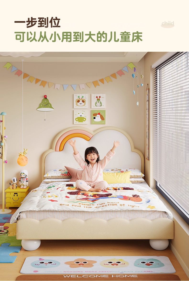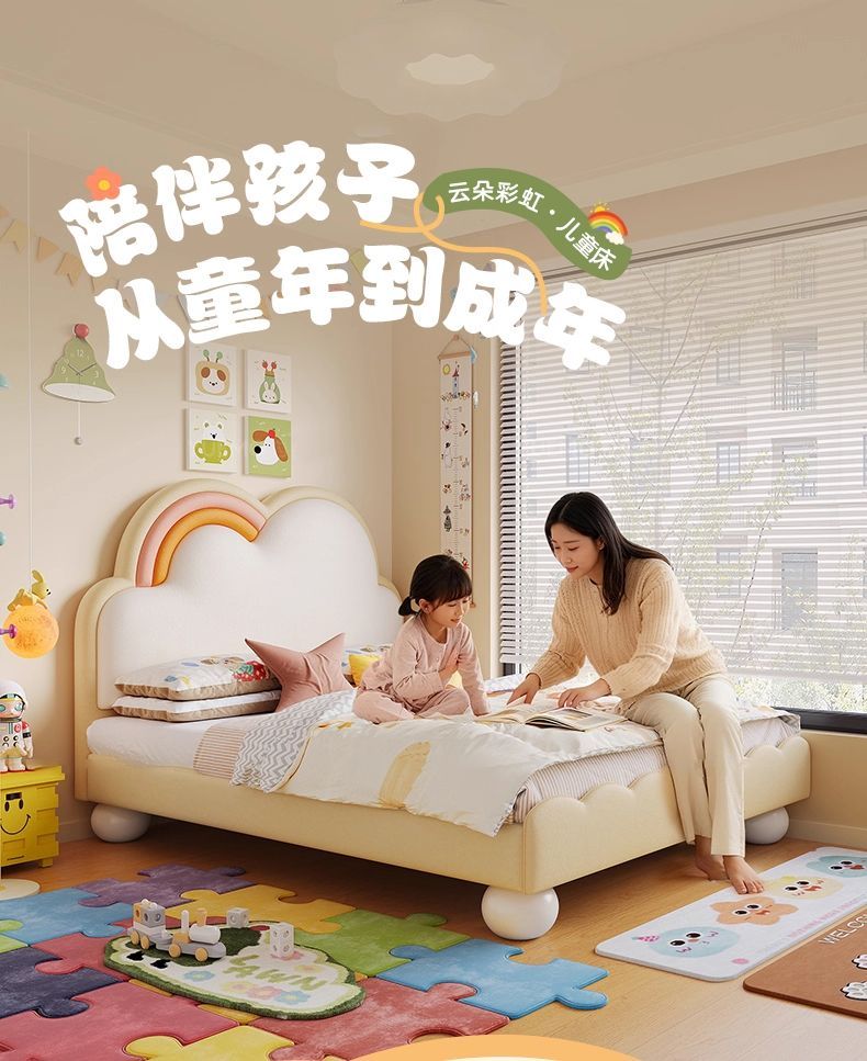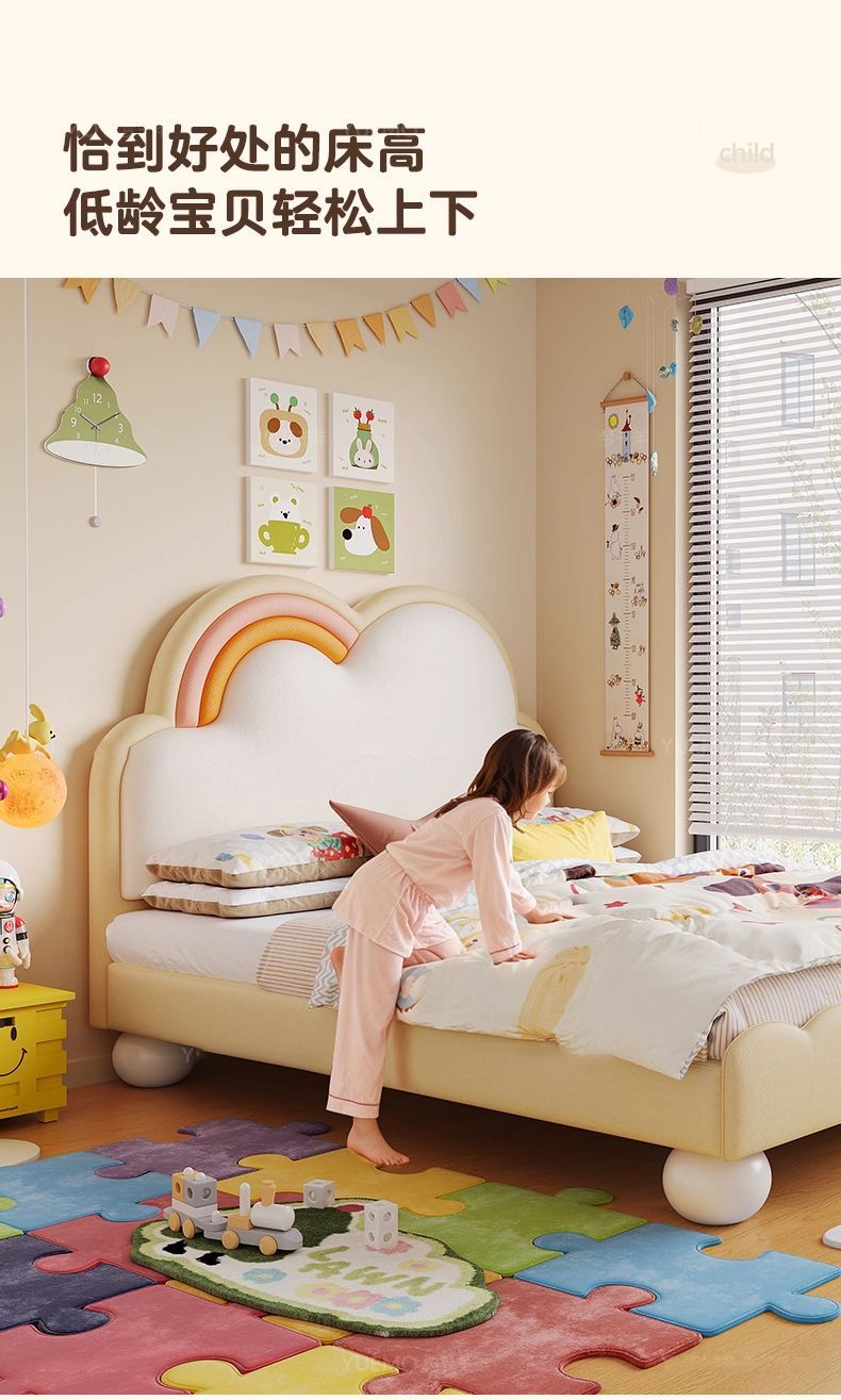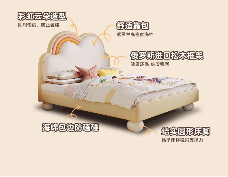 P rainbow bed boys and girls princess leather bed bedroom modern simple drawer storage small apartment children's room single bed