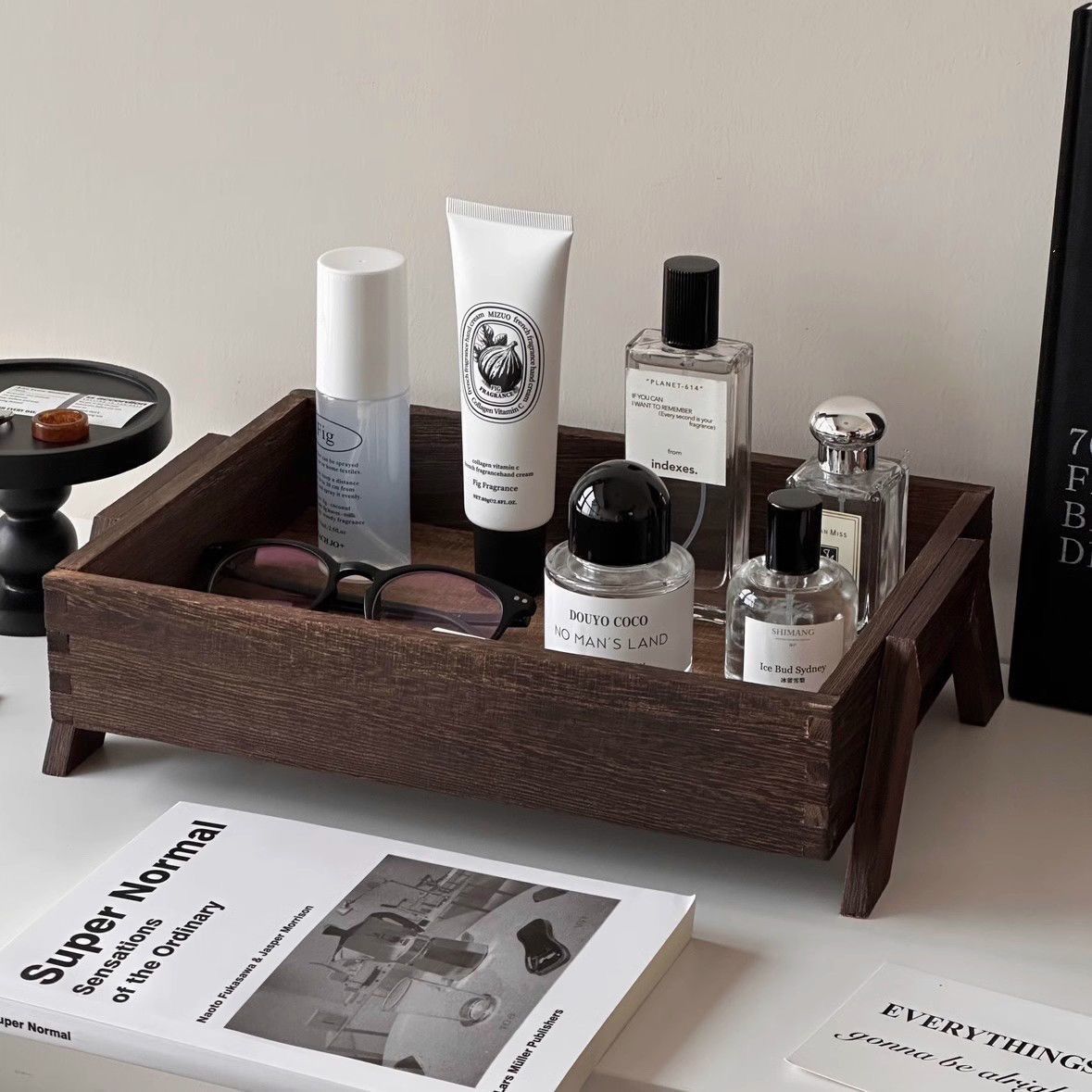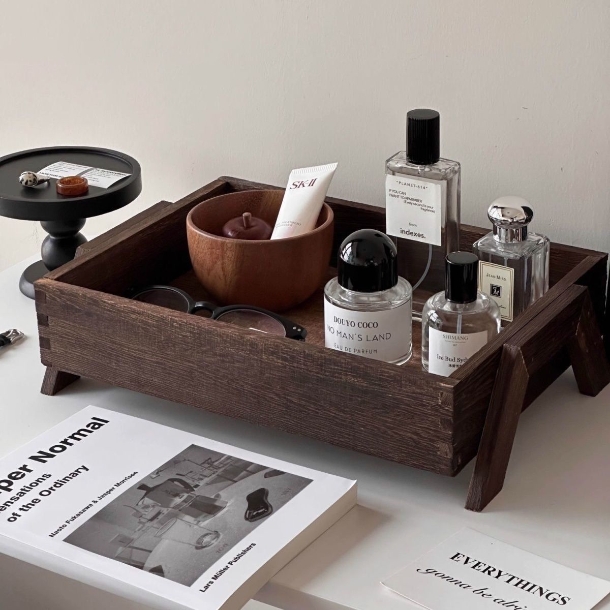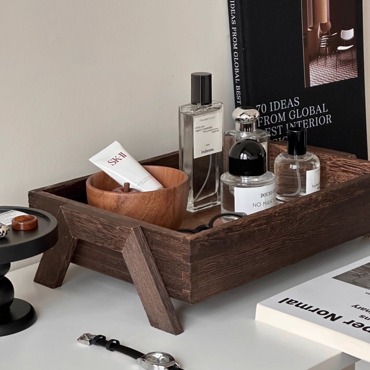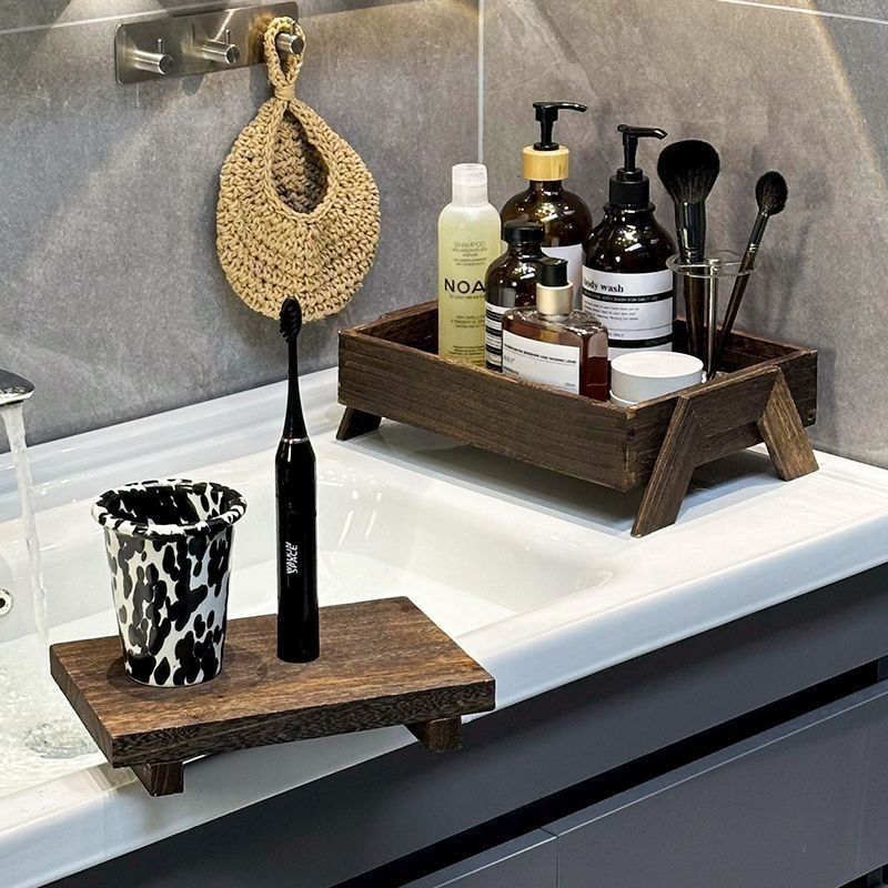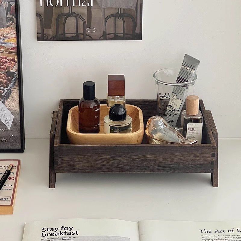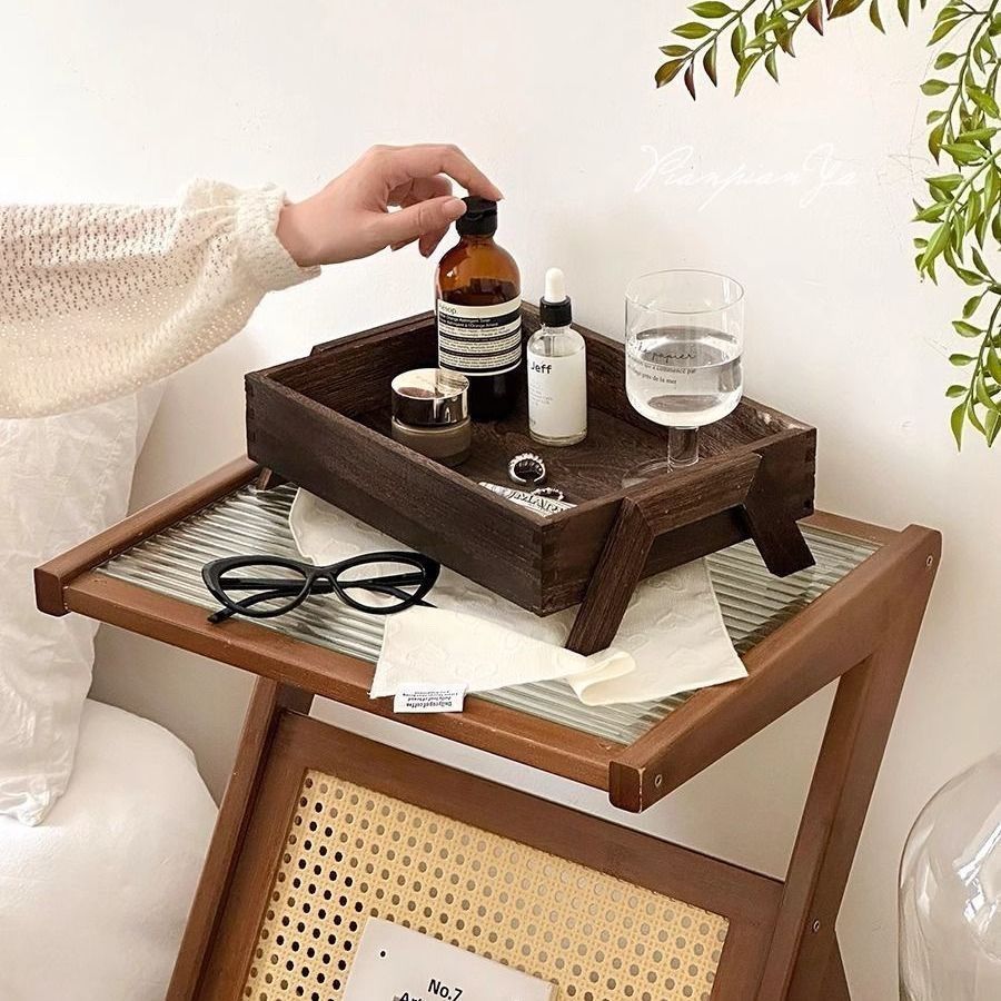P retro solid color wooden tray free assembly high foot shape suitable for porch, bedroom, dining room