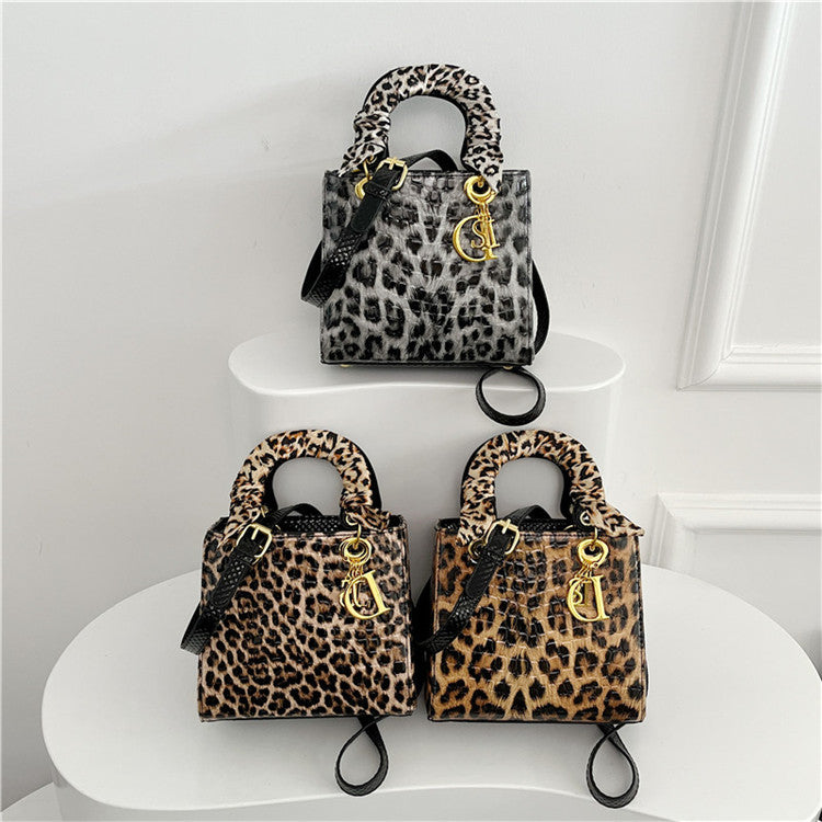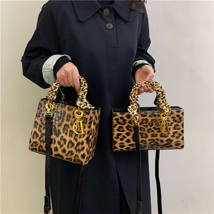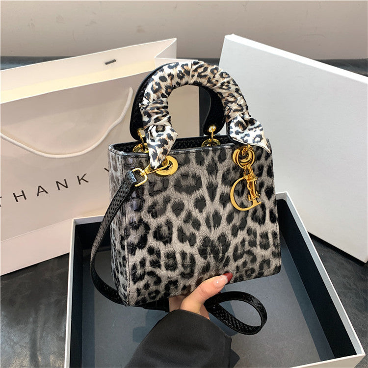 A retro stone pattern Princess Diana bag popular in Europe and America, leopard print handheld women's bag texture versatile single shoulder messenger bag foreign trade
