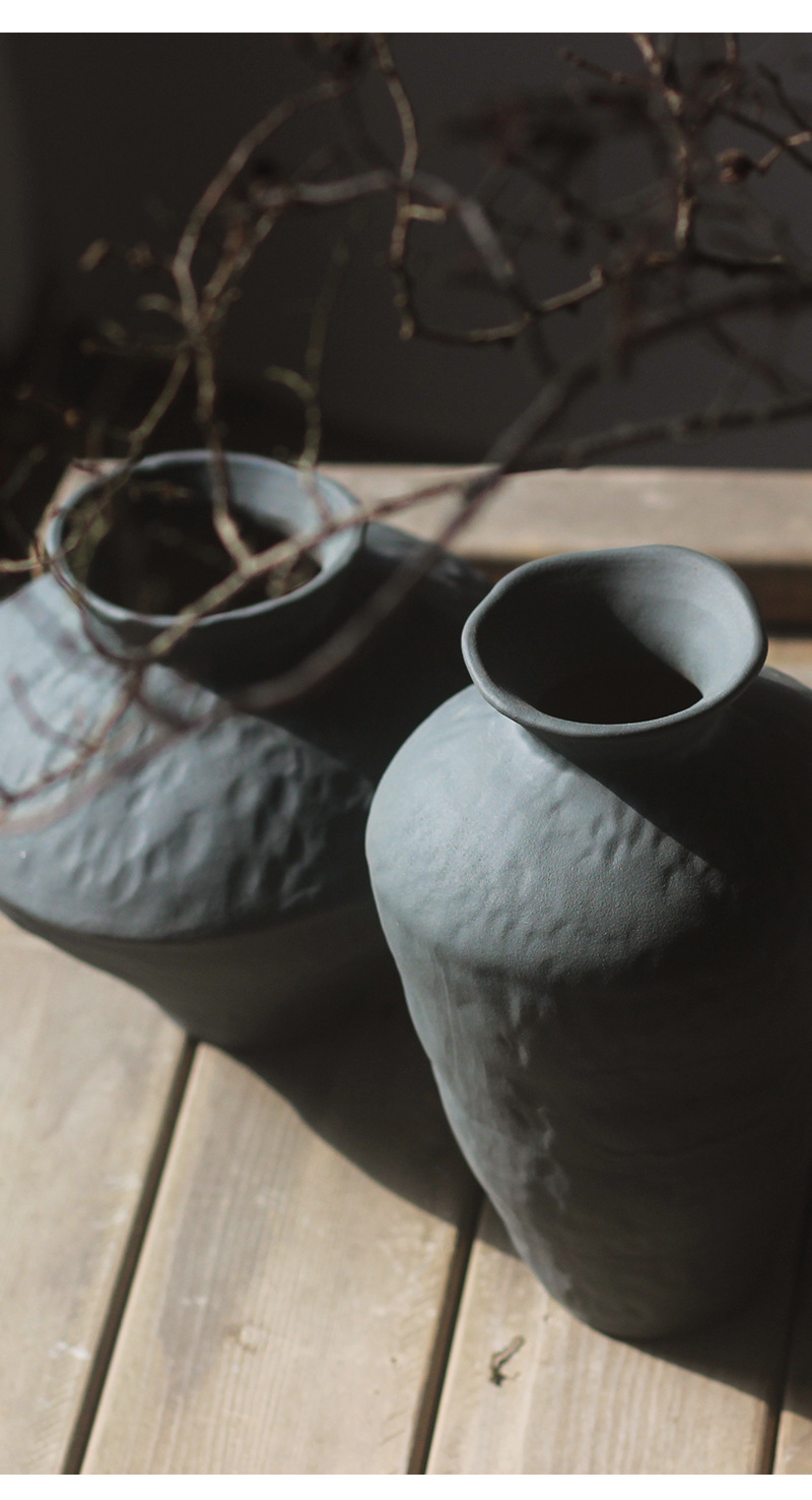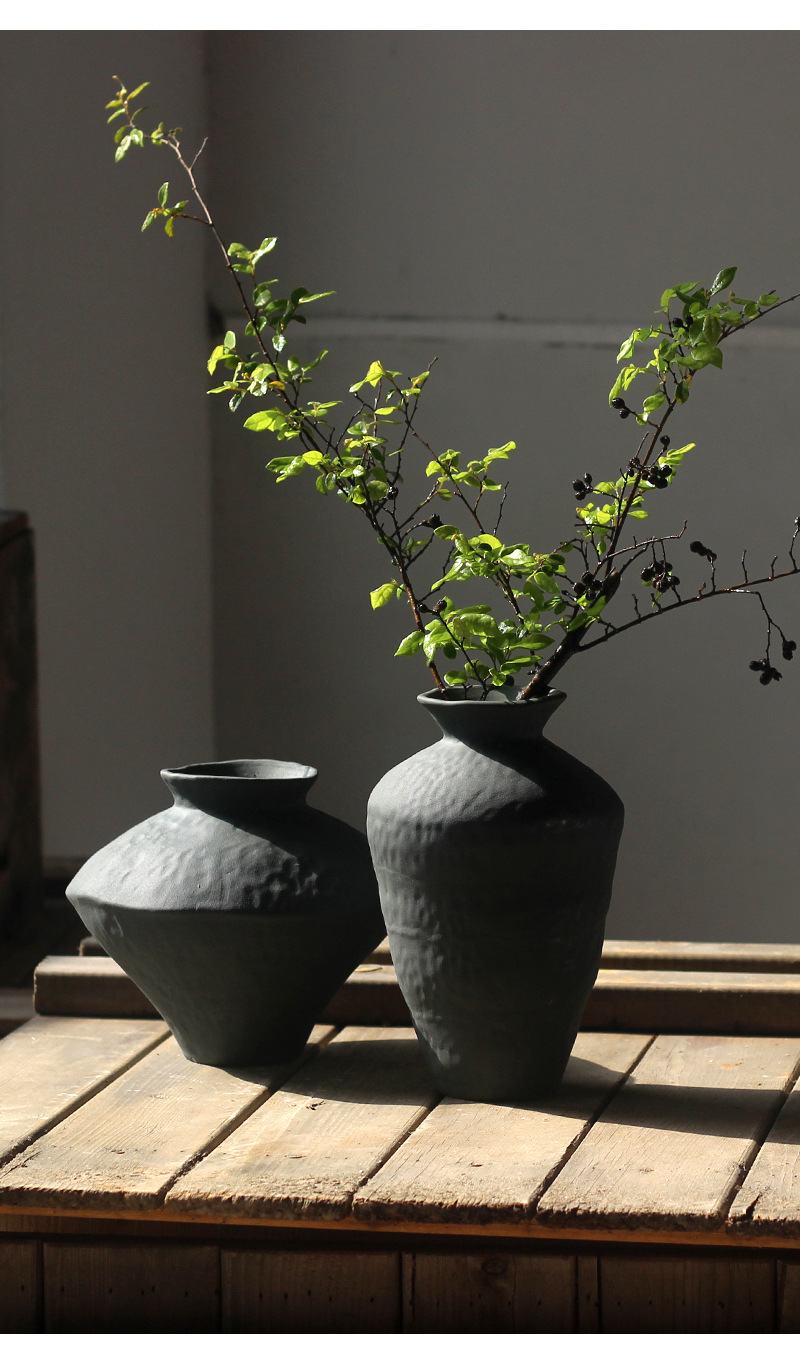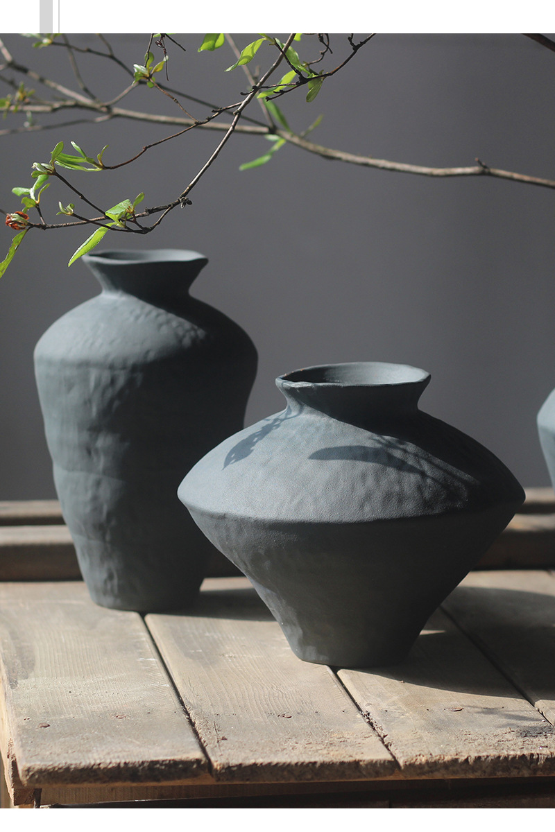 A retro Zen vase ceramic art advanced sense wabi-sabi wind Japanese coarse pottery living room flower arrangement B & B niche ornament