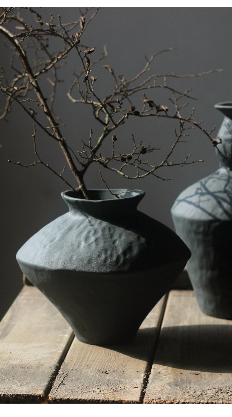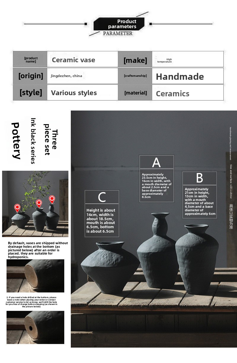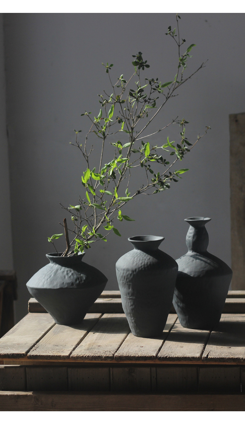 A retro Zen vase ceramic art advanced sense wabi-sabi wind Japanese coarse pottery living room flower arrangement B & B niche ornament
