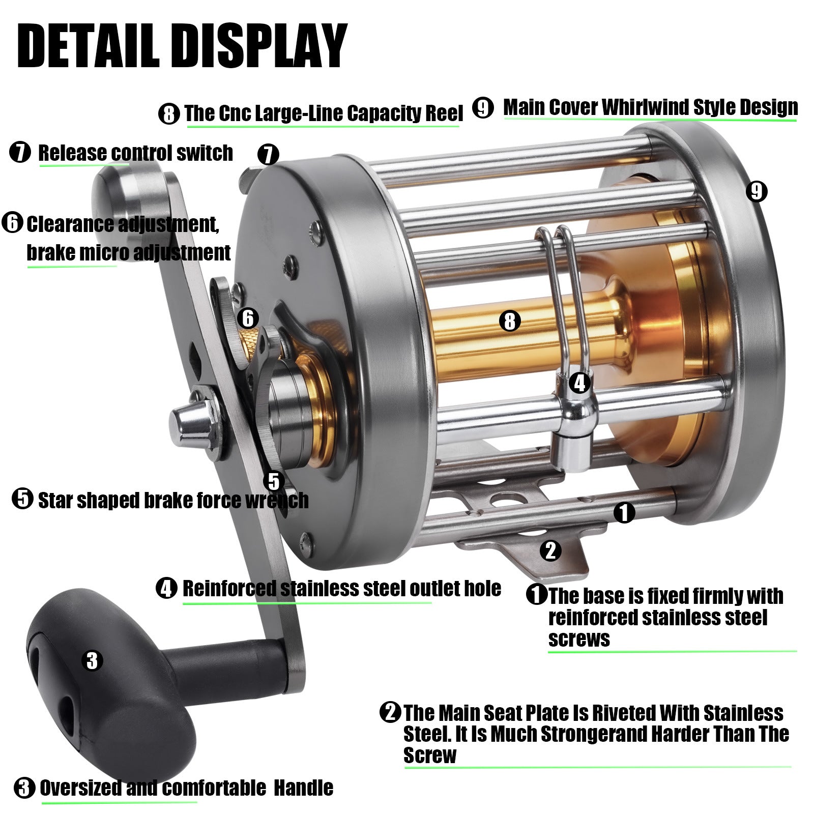 A Deep Sea Saltwater Drum Reel – Iron Plate, Slow Jig, Large Capacity