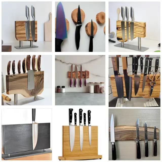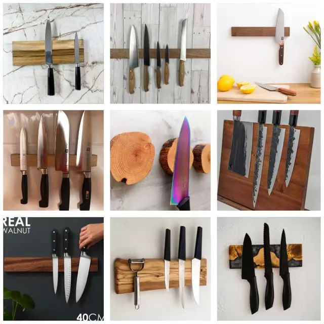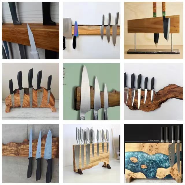 A Solid wood magnetic knife holder Household kitchen knife holder Magnetic tool rack Kitchen creative multi-functional shelf