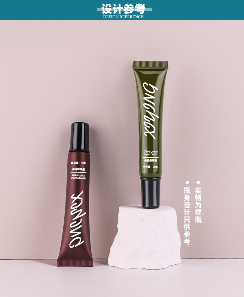A 20g brown eye cream tube with plastic black cover pickle green facial cleanser hose, cosmetic plastic packaging bottle