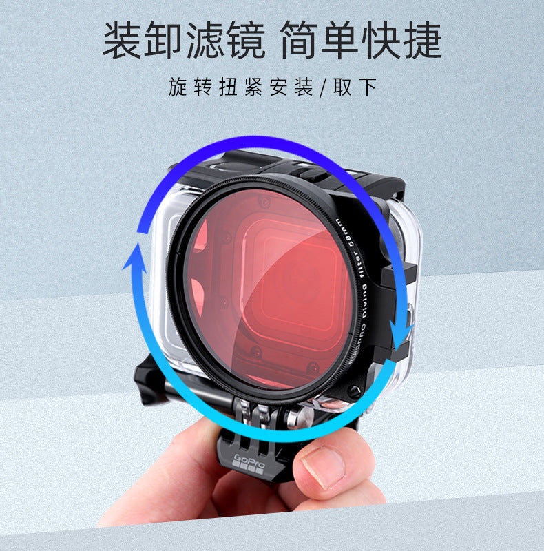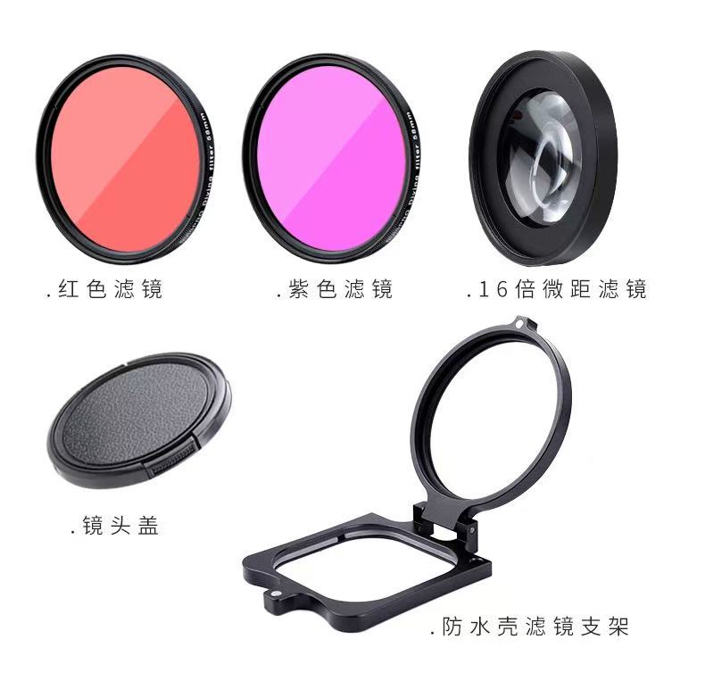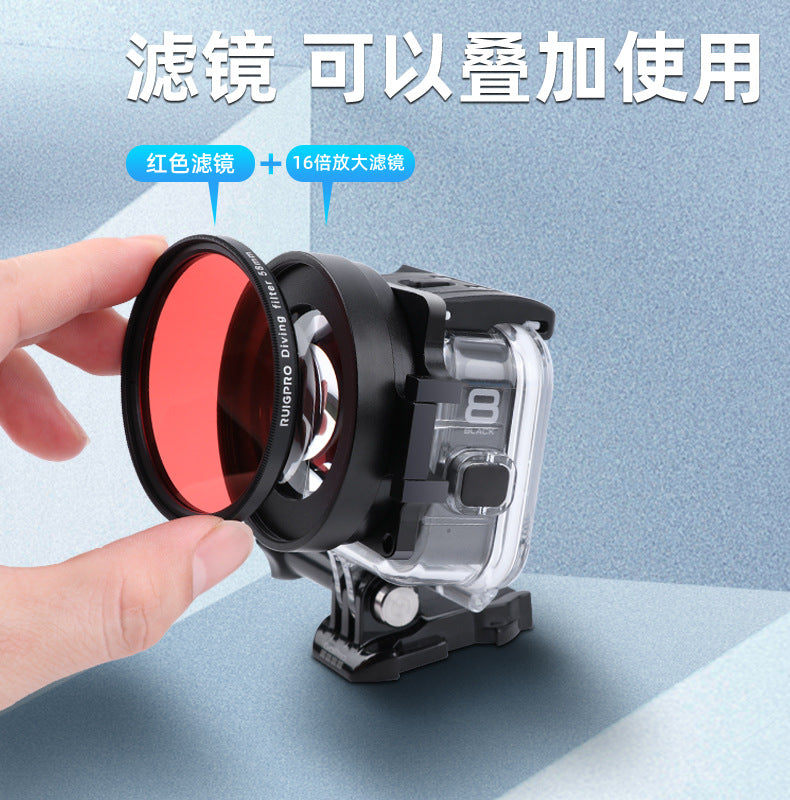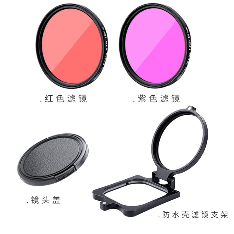 A Compatible with Hero8 Original Diving Case Adapter Ring 58mm Filter Red/Purple Flip Filter Macro Lens
