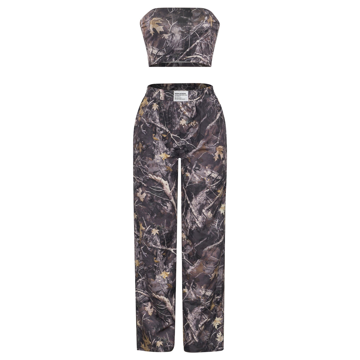 W301ST Cross-border American Teen Women's Fashion Casual Elastic Waist Printed Tube Top Skinny Overalls Set